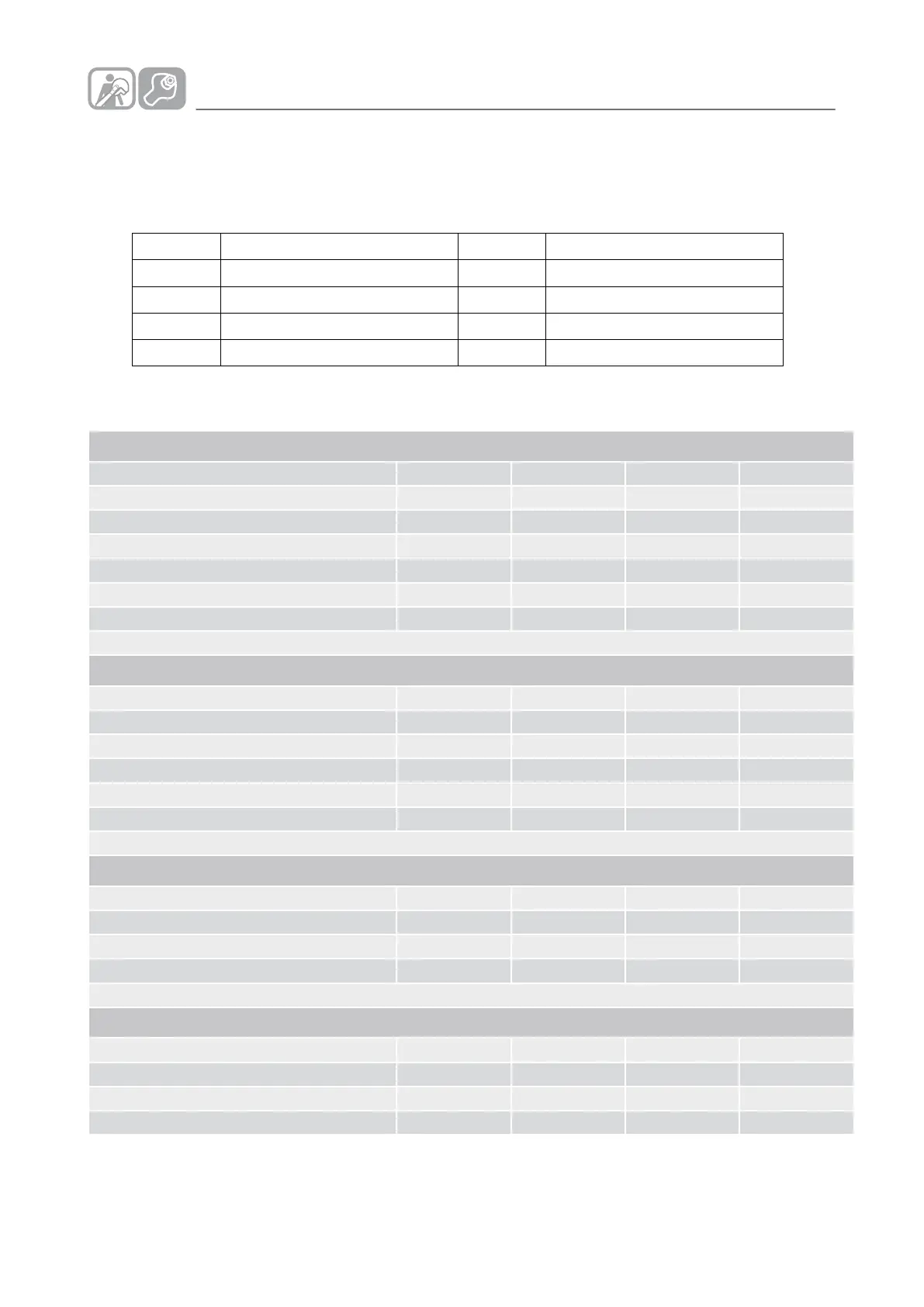 Tabella dei dati tecnici G2SA11 - G4SA11 - G4SF11 - G4SFE11