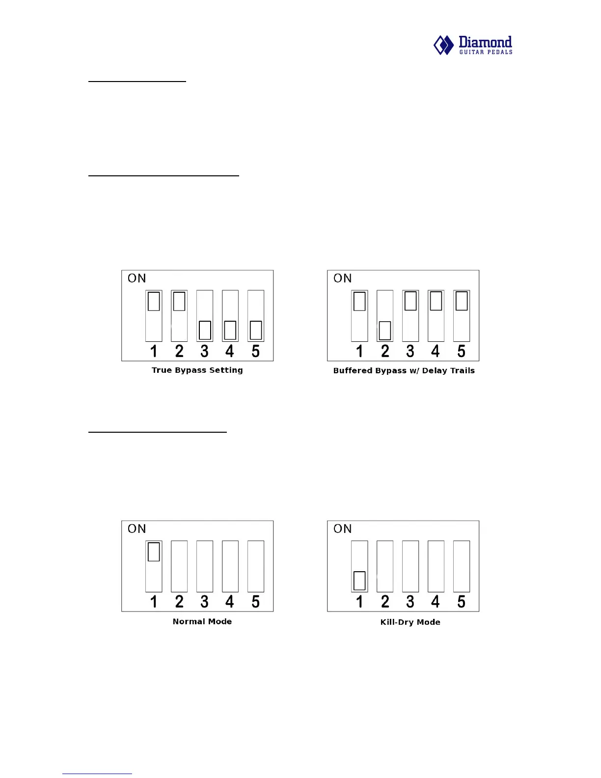 *Note that switch #1 is not related to the bypass setting but to the Kill-Dry mode noted below.