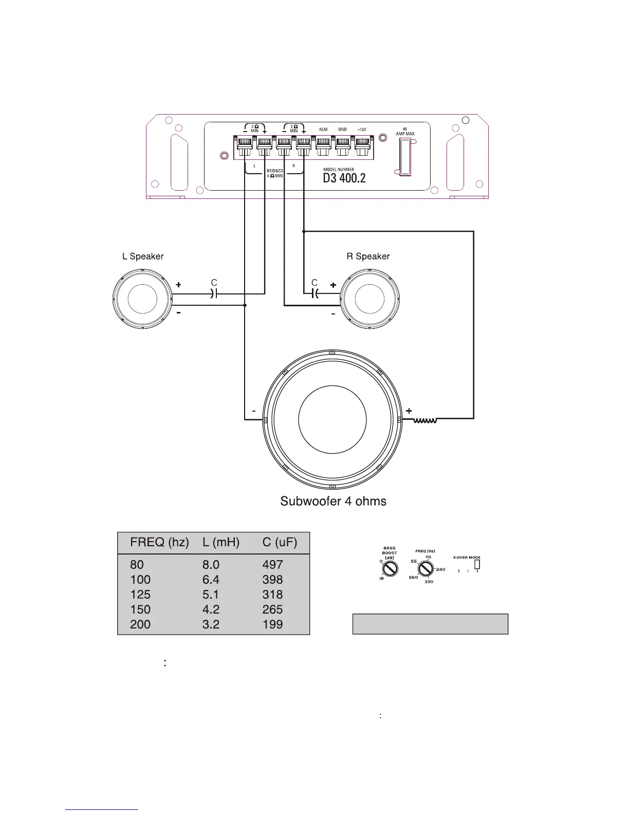 both LP and HP crossovers. Do not overlap frequencies, as this may damage the amplifier.