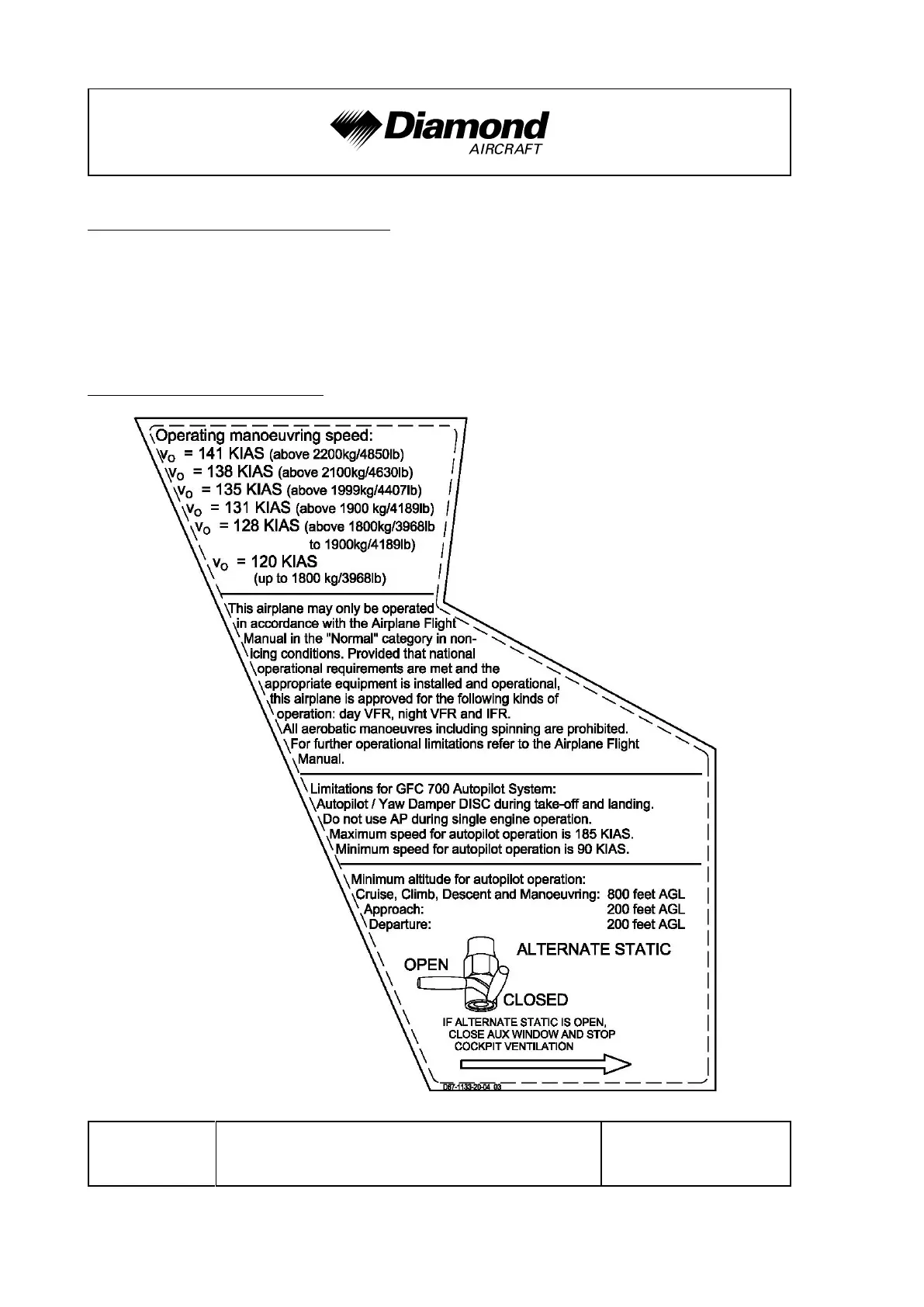 Operating Limitations DA 62 AFM