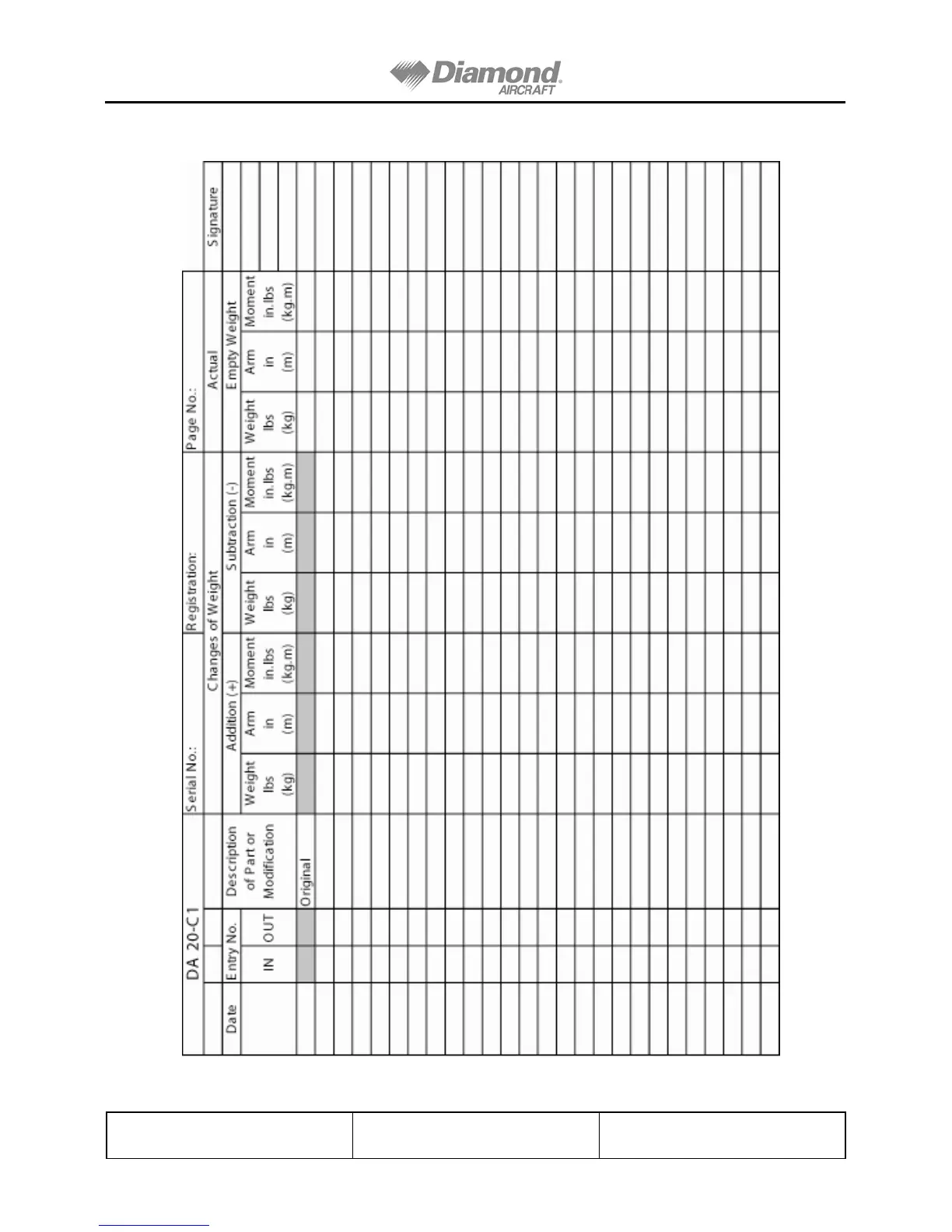 Diamond DA20-C1 - Sample Weight and Balance Report Table