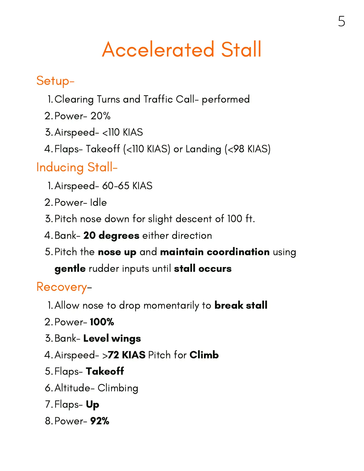 Diamond DA40NG - Accelerated Stall; Stall Entry Setup; Inducing the Stall; Stall Recovery