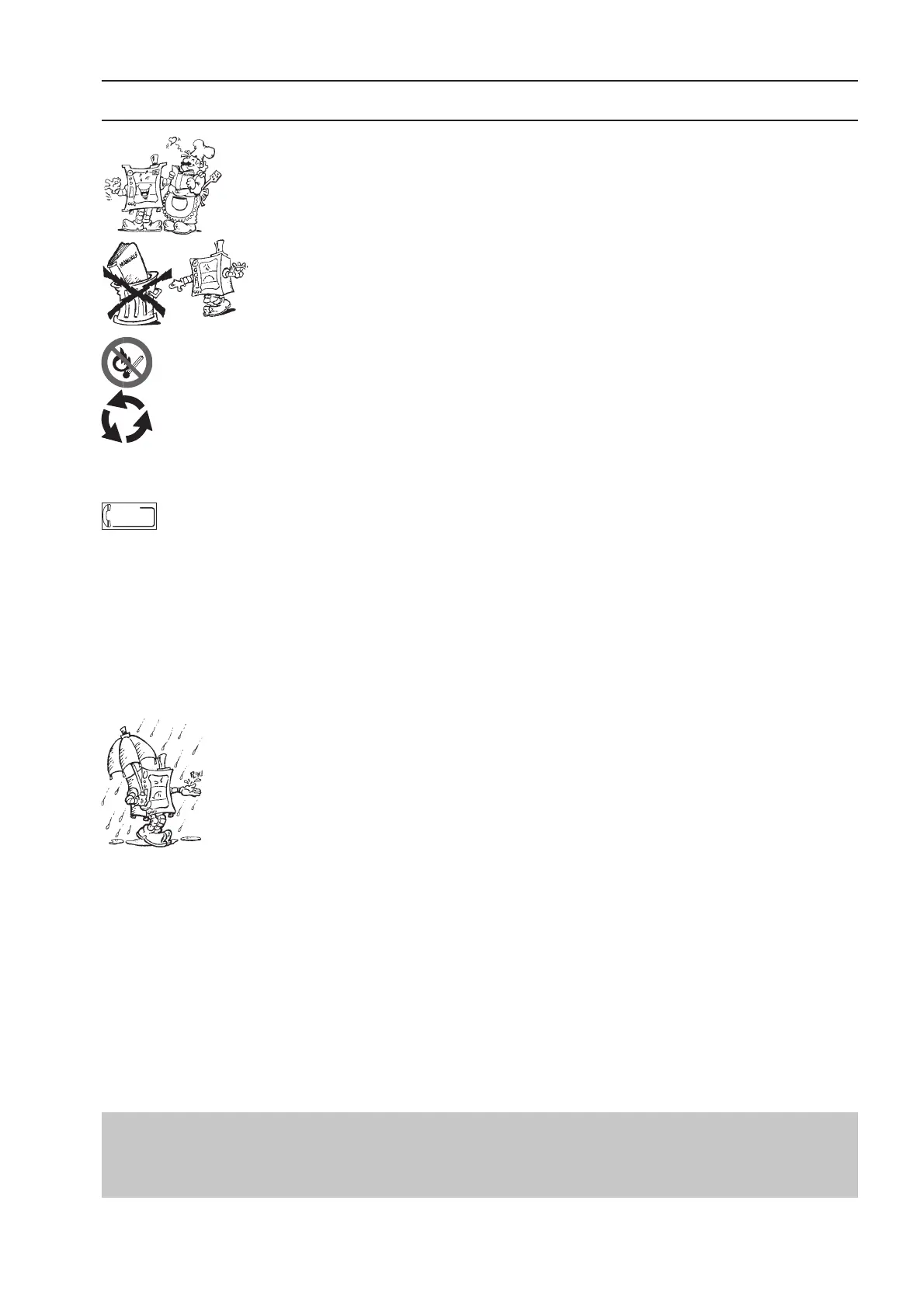 • Do not store or use gasoline or other flammable vapours, liquids or items in the vicinity of this or any other appliance.
