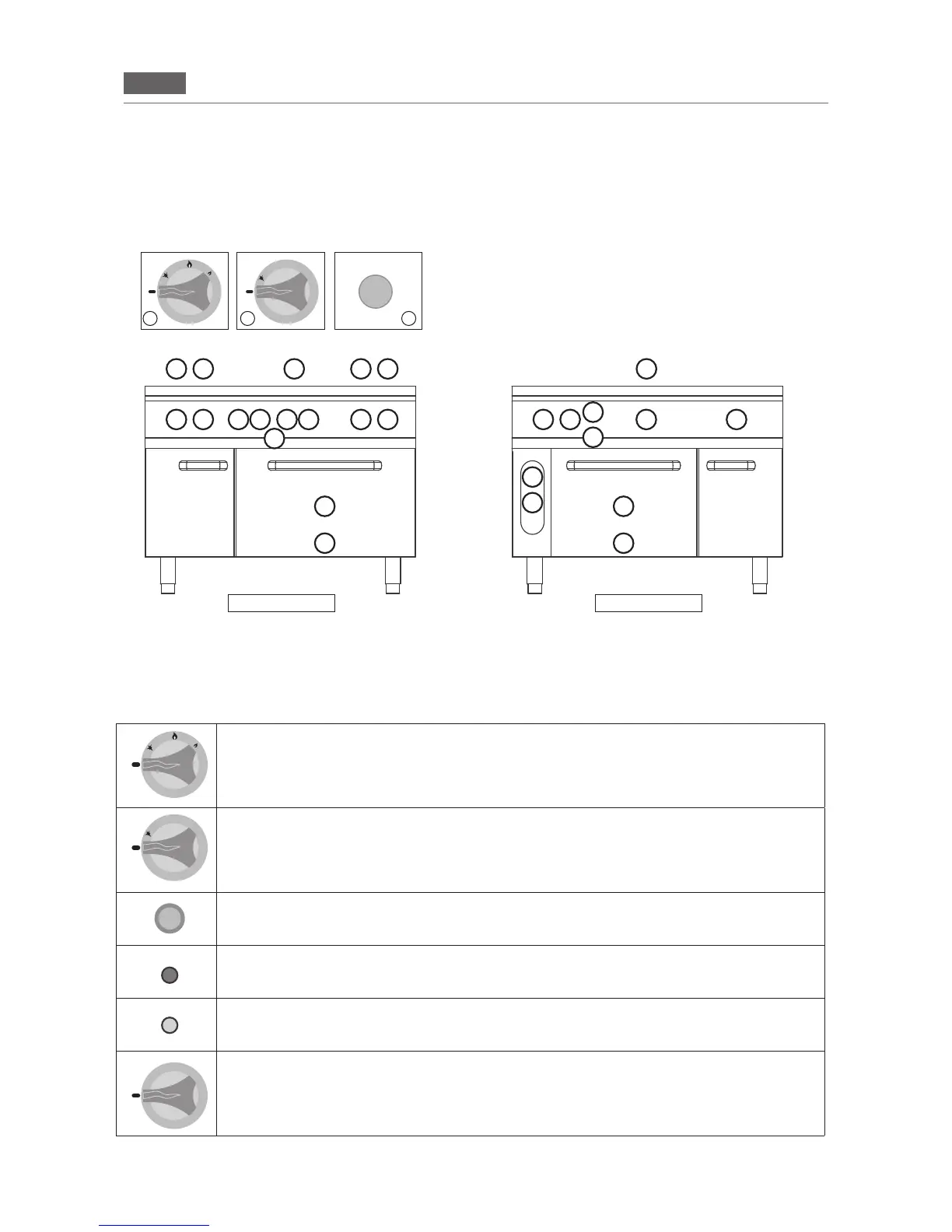 Green indicator light (GAS/ELECTRIC): The indicator is subordinated to use of the switch-on knob.