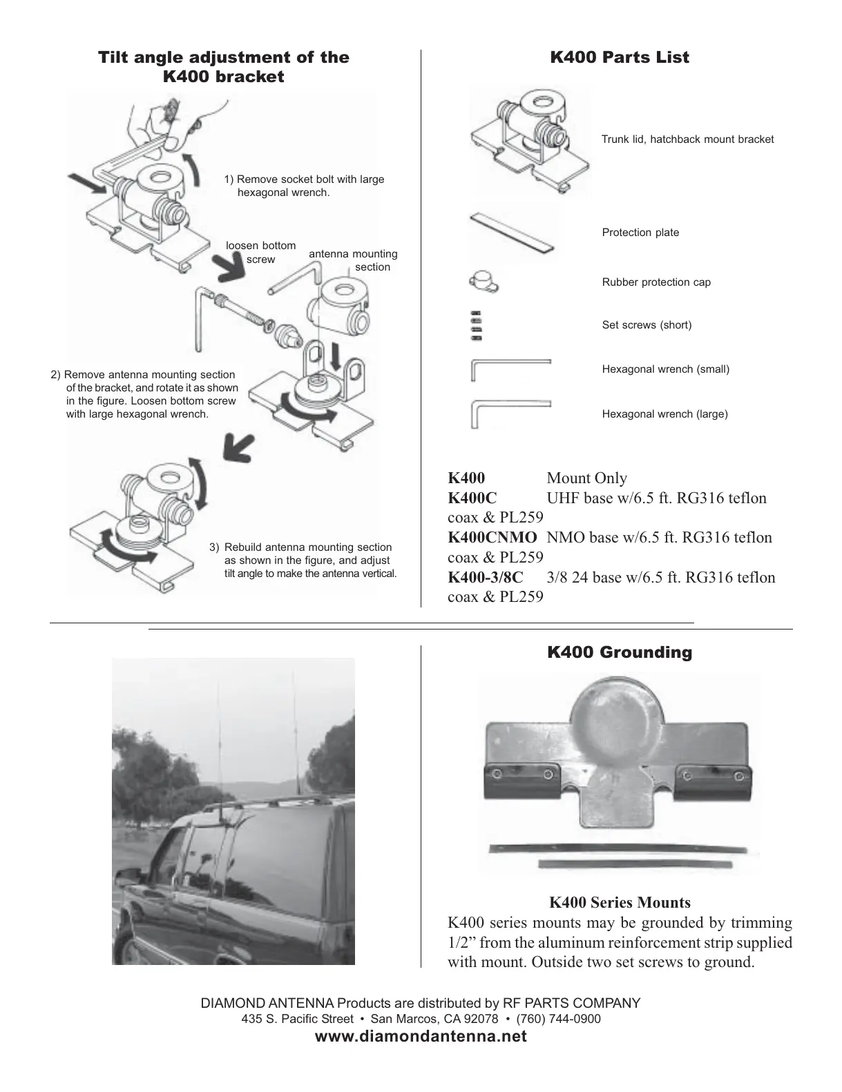 DIAMOND ANTENNA Products are distributed by RF PARTS COMPANY