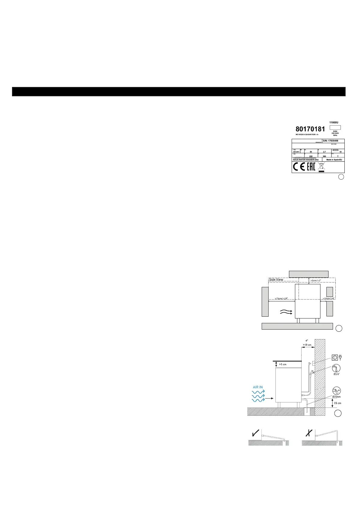 L’appareil doit être placé de manière à laisser un espace minimum entre la partie arrière et le mur an de garantir un accès facile et sans risque à la prise.