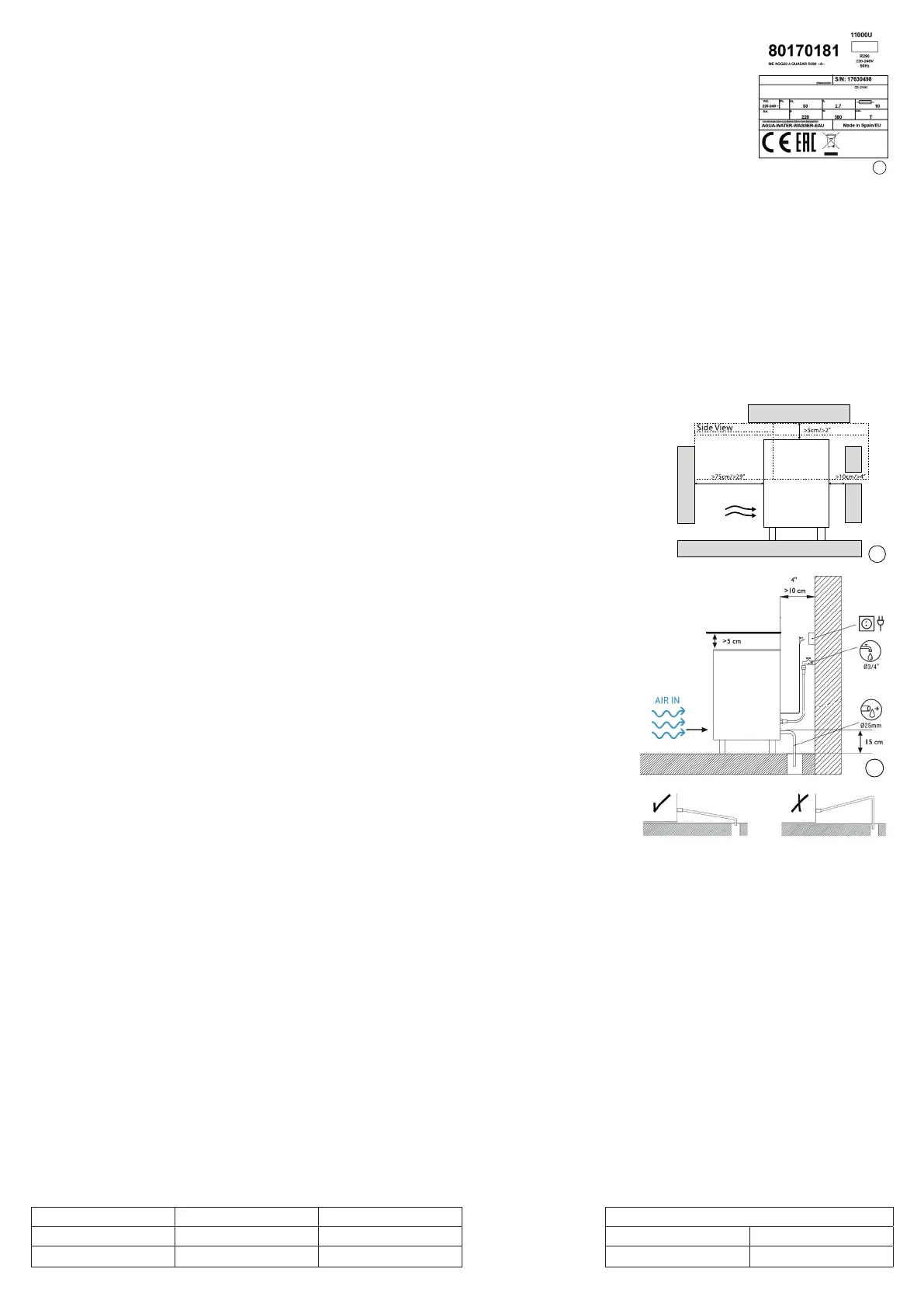 La posizione deve consentire uno spazio suciente per l'acqua, lo scarico e i collegamenti elettrici nella parte posteriore della macchi-