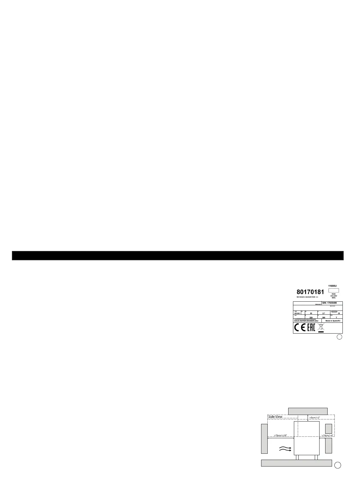 Platsen måste tillåta utrymme för anslutning av vatten, avlopp och elektriska anslutningar på baksidan av ismaskinen.