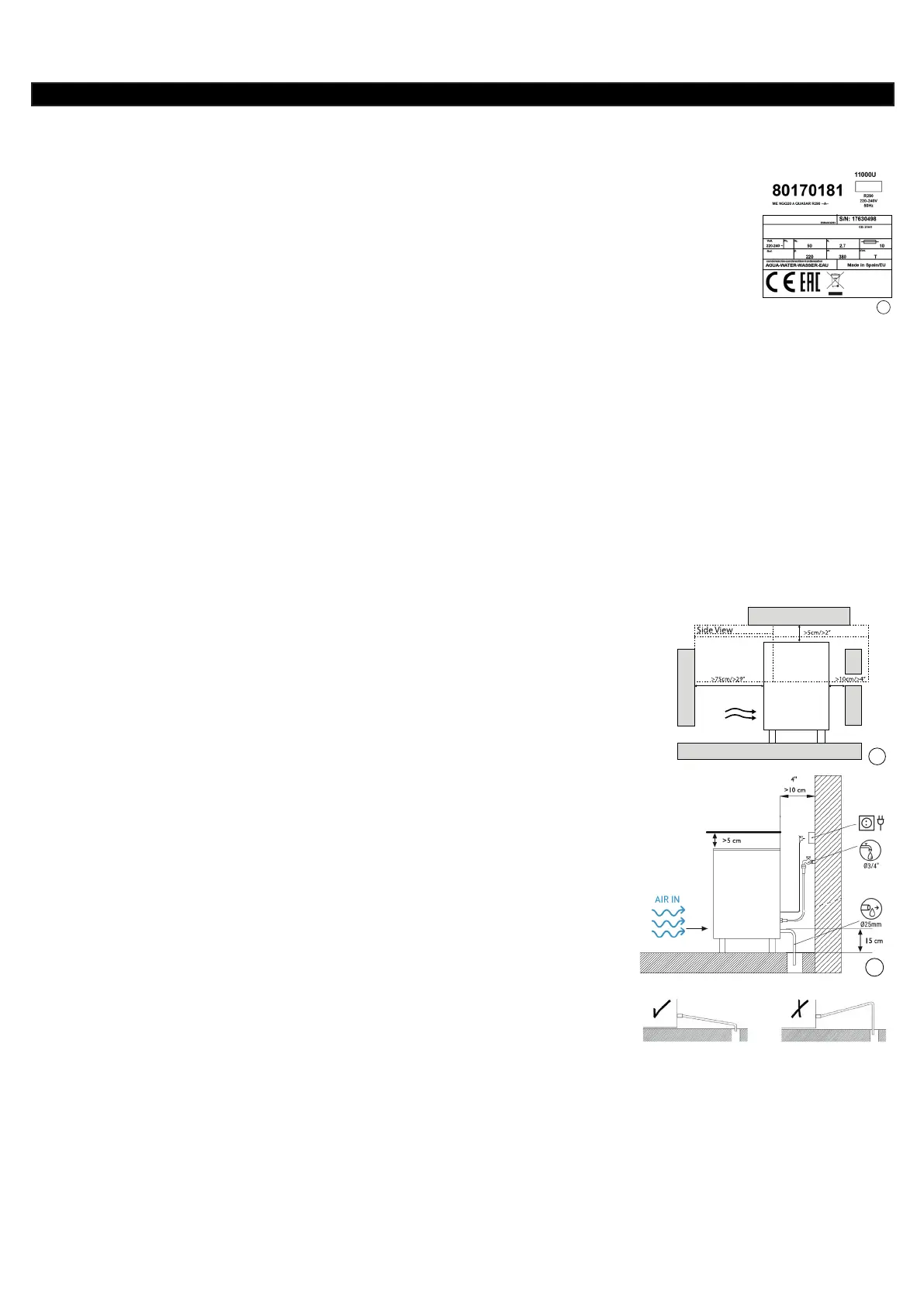 Для обеспечения легкого и безопасного доступа к штепсельной вилке, прибор должен быть размещен с соблюдением минимального пространства между задней