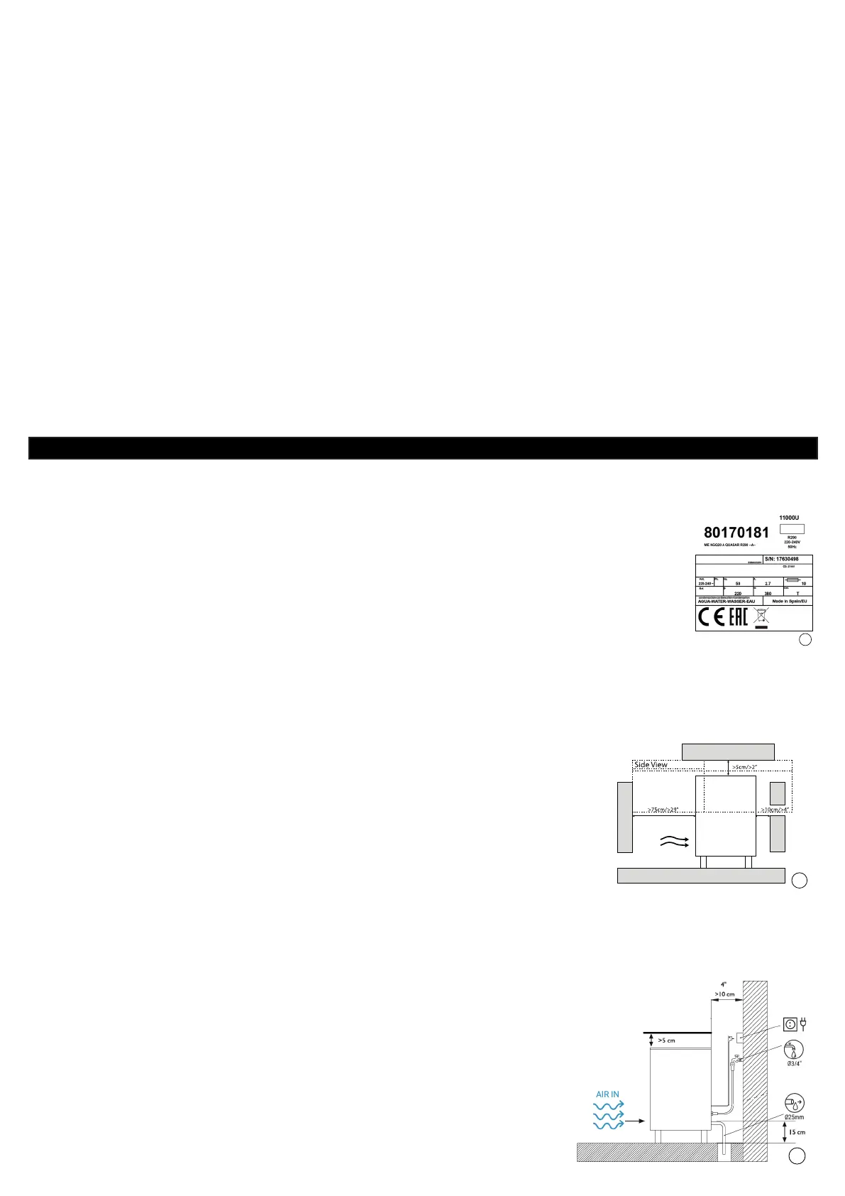 němu horký vzduch z jiného zařízení, důrazně doporučujeme, abyste, pokud není možné změnit umístění stroje, NAINSTALOVALI JEDNOTKU KONDENZÁTORU VODY.