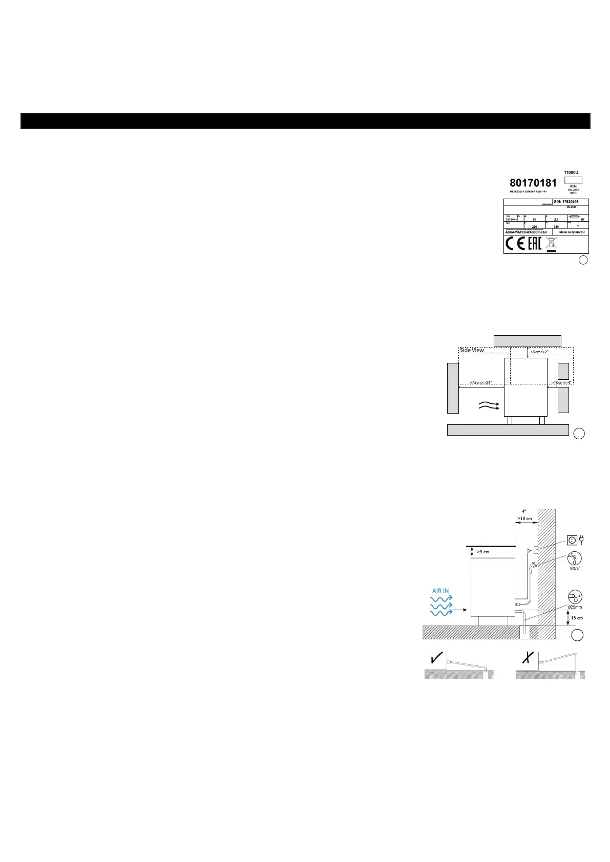 MAKİNENİN KAPALI ALANLARDA KONUMLANDIRILMASI, ETRAFTAKİ CİSİMLERE KARŞI ŞU MESAFELER DİKKATE ALINARAK YAPILMALIDIR.