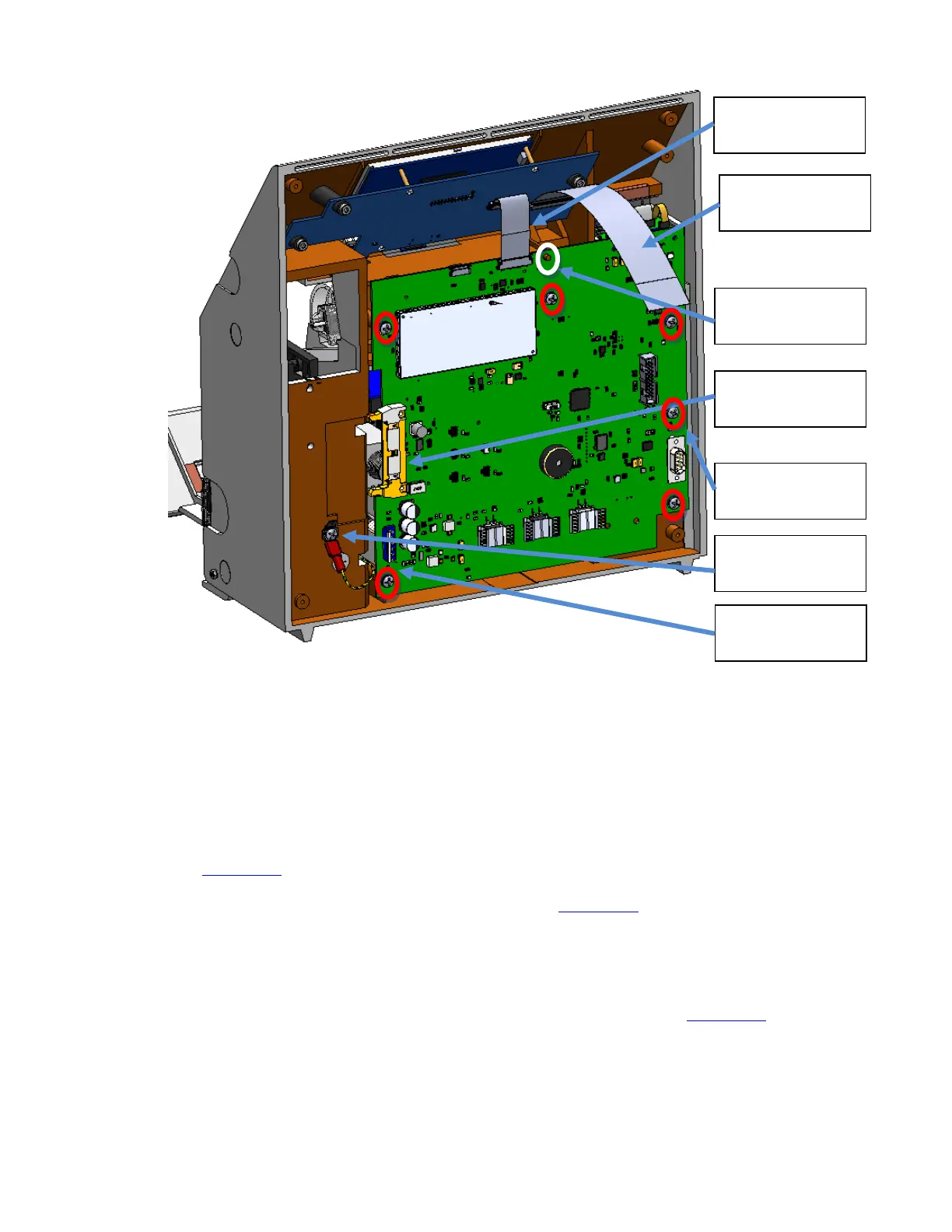 5. Remove the 6 screws with their plastic washers that hold the CPU board to front case.