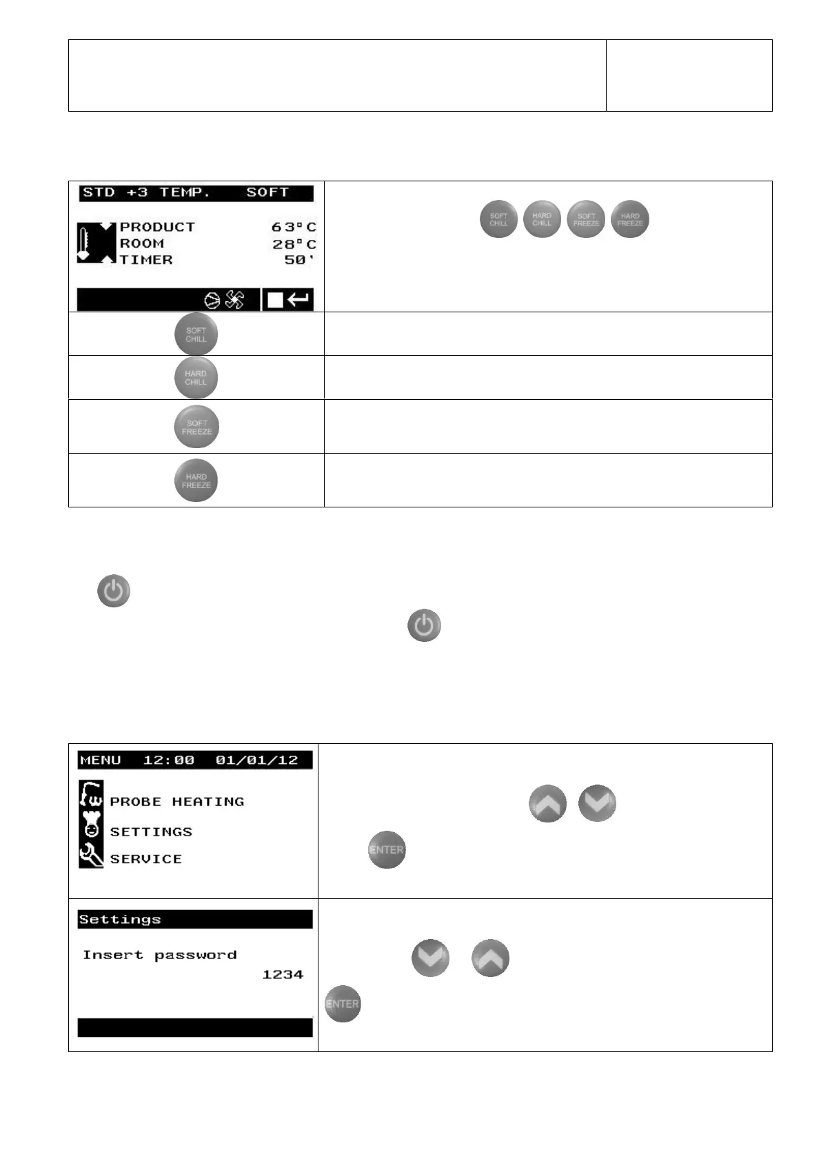 By pressing one of the keys the blast chiller and