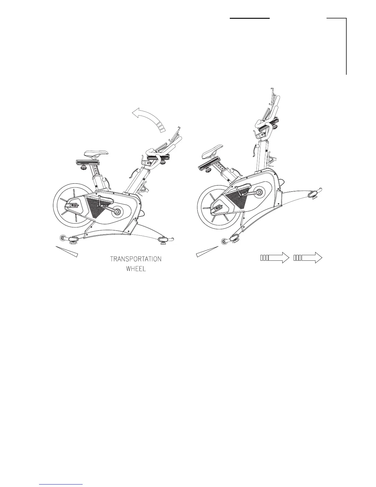 Hold the handle bar and lift it up until the front transportation wheel