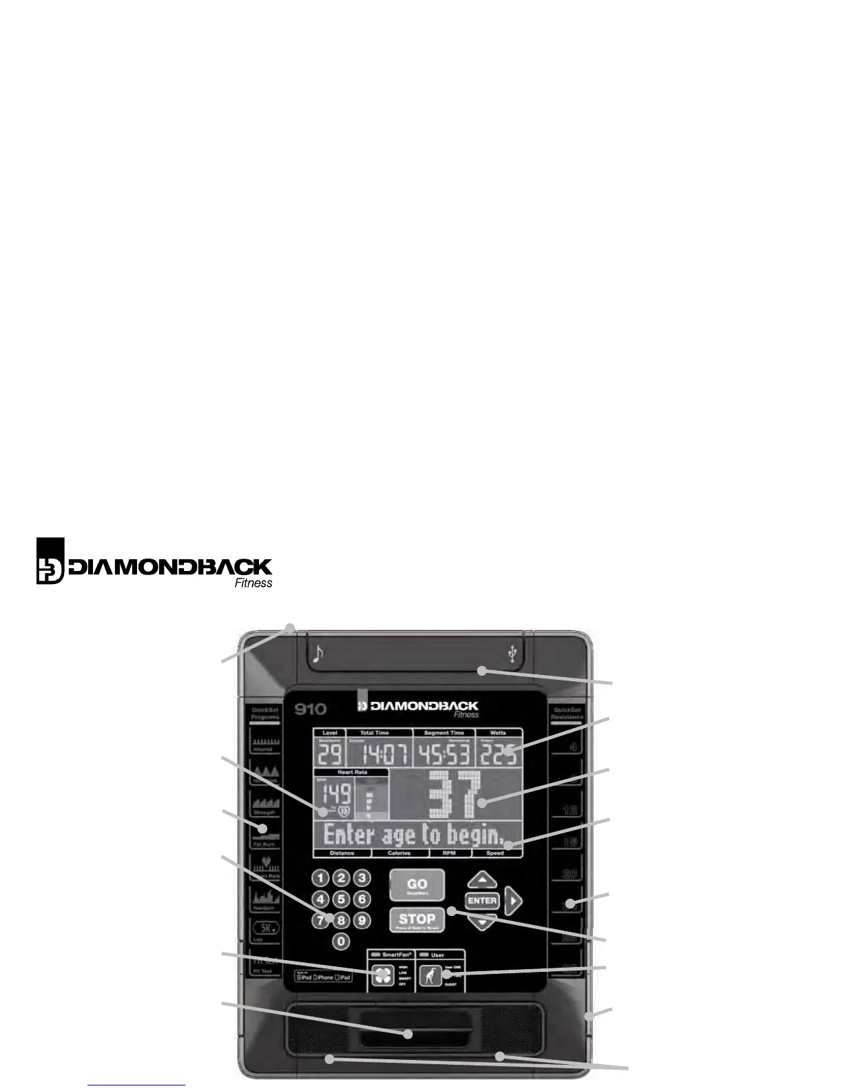 Diamondback 910Sr - 910 CONSOLE OVERVIEW; Console Layout