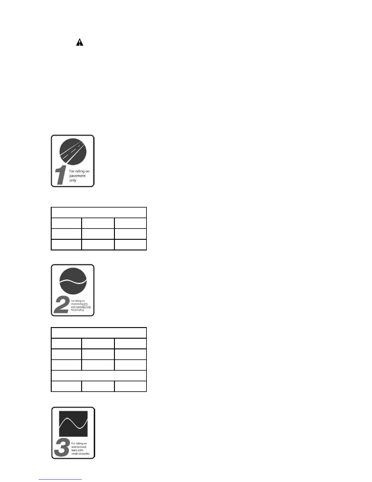 areas where momentary loss of tire contact with the ground may occur. NOT jumping. All mountain bikes without rear