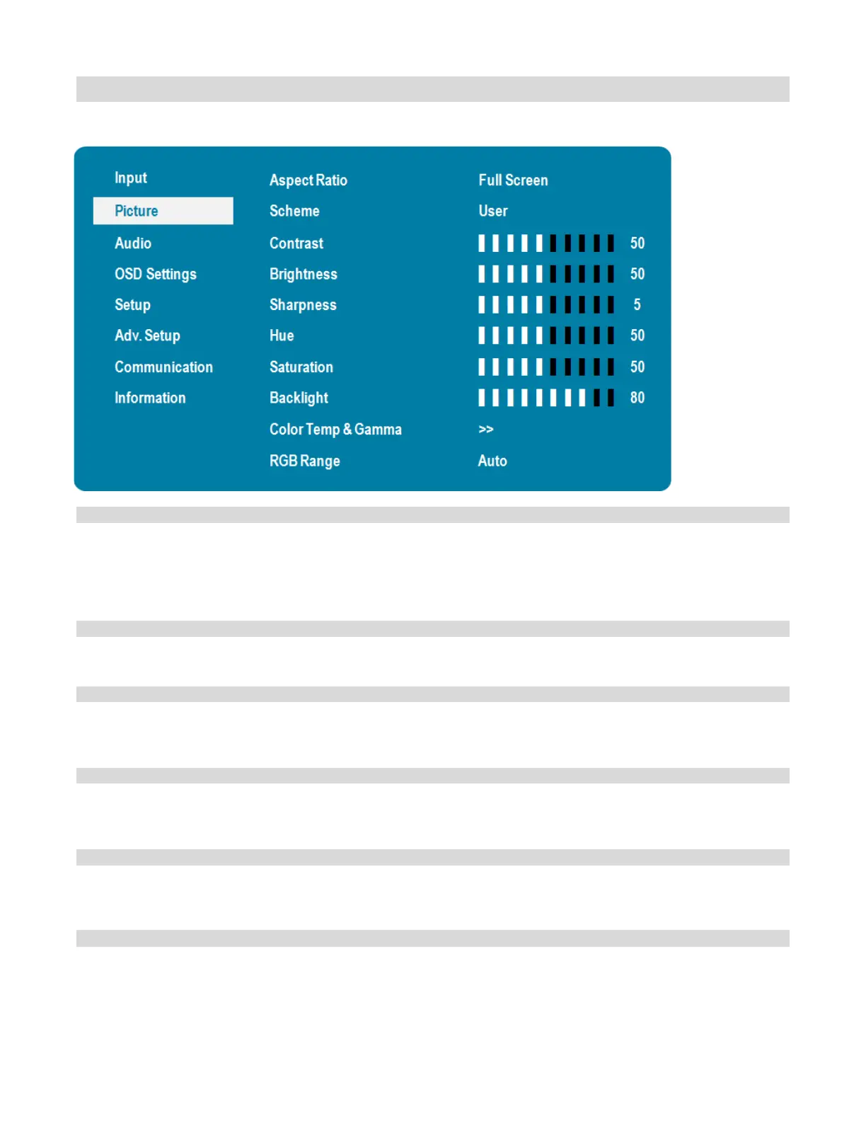 This menu is used for making common video adjustments.