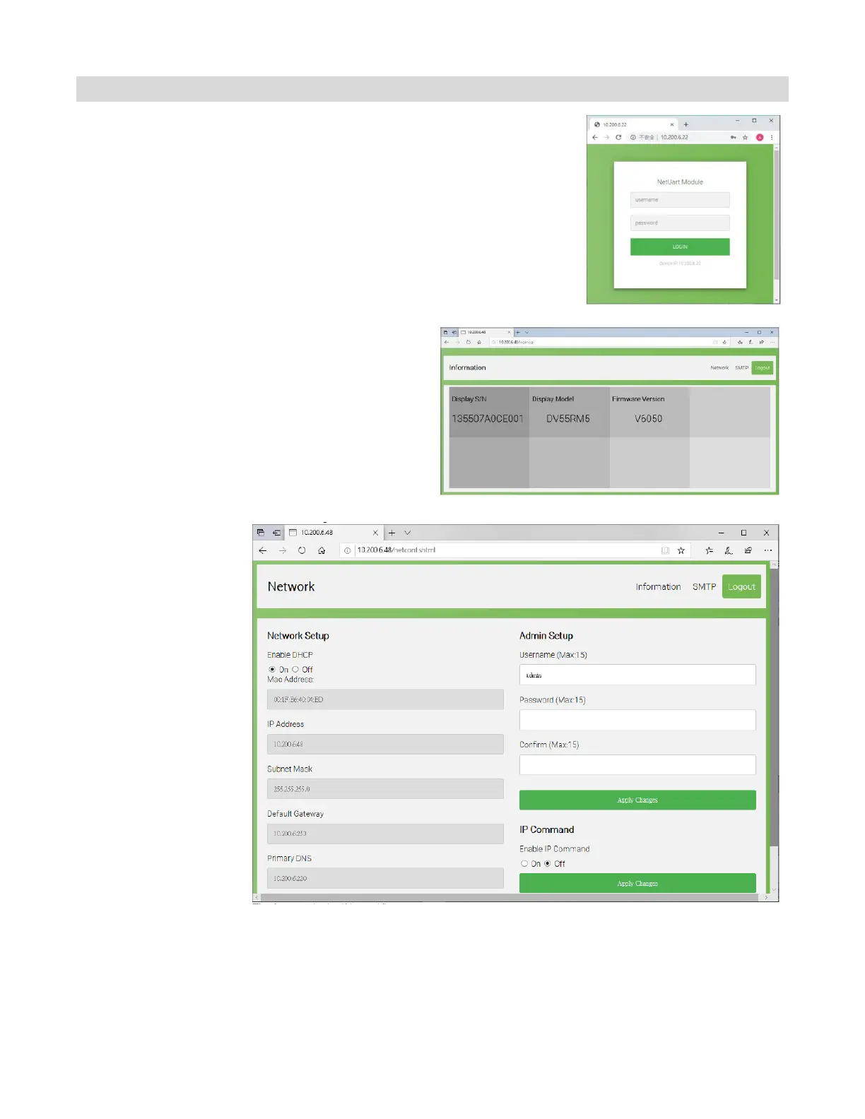 1. Login – Use Web browser to configure the Ethernet board and
