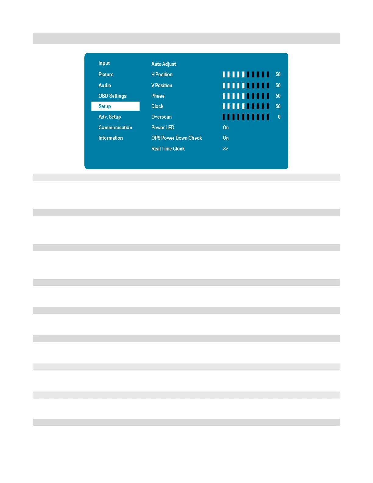 Adjust the clock of the displayed signal (VGA source only). Press or to select the