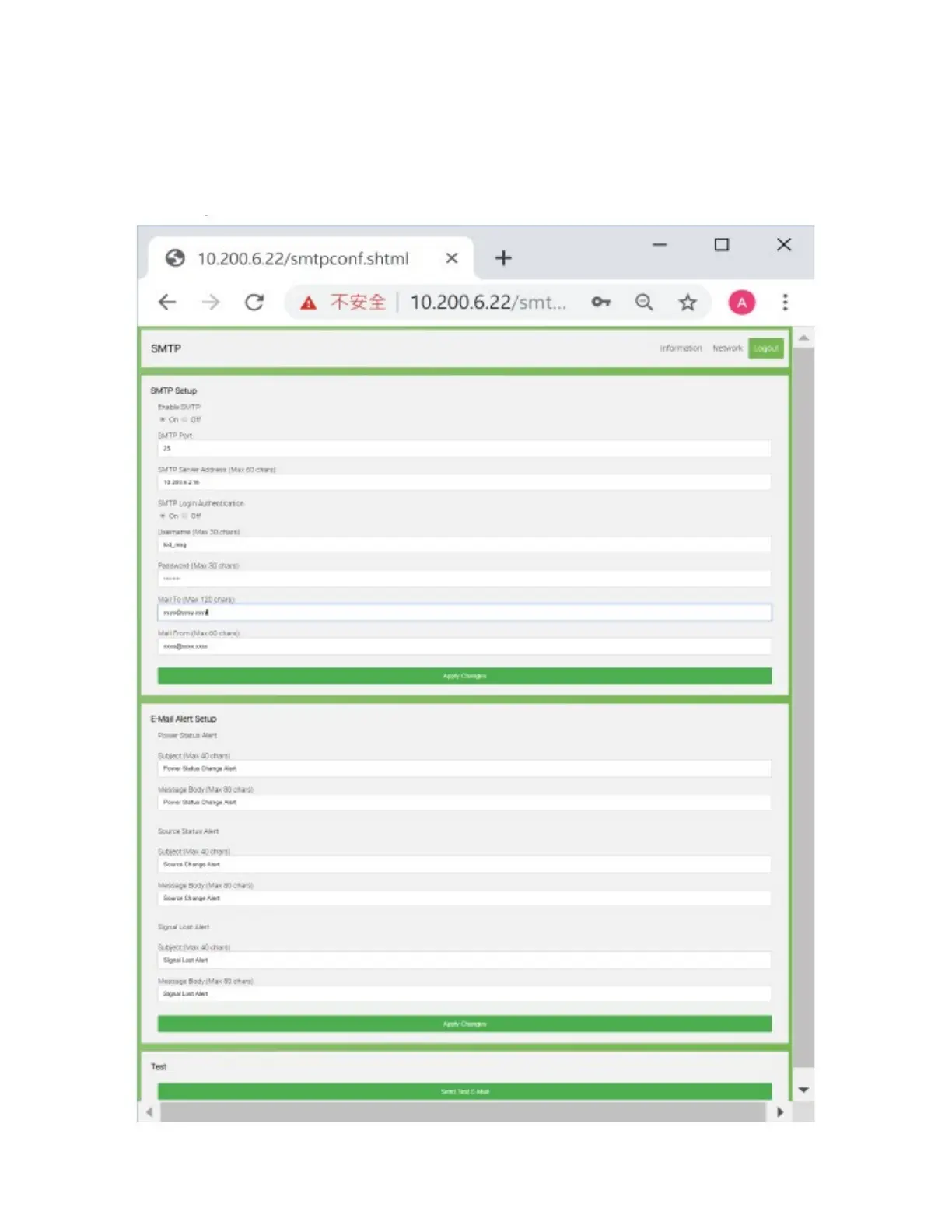 b. Setup and Configure Email Alert of Power Status, Source Status and Signal Lost Status