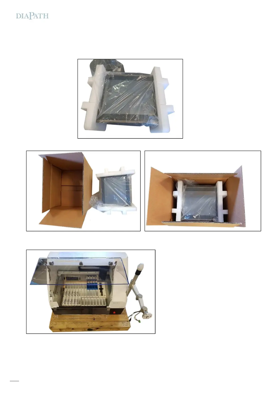 Take care that the instrument stays within the pallet and position all trays. Place racks within trays.