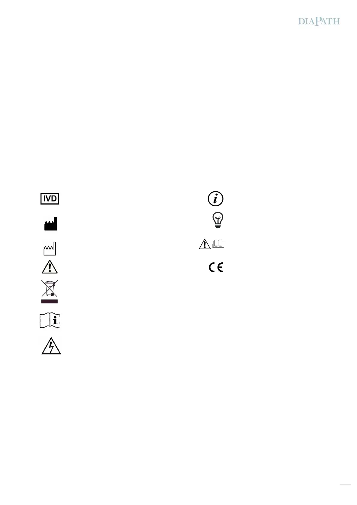 • An instrument use different from Diapath S.p.A. instructions might compromise its functioning and the safety of the