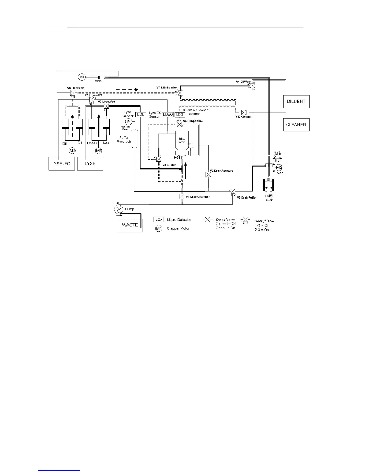 the Lyse syringe moves upwards. This process makes the WBC/HGB dilution with lyse reagent.