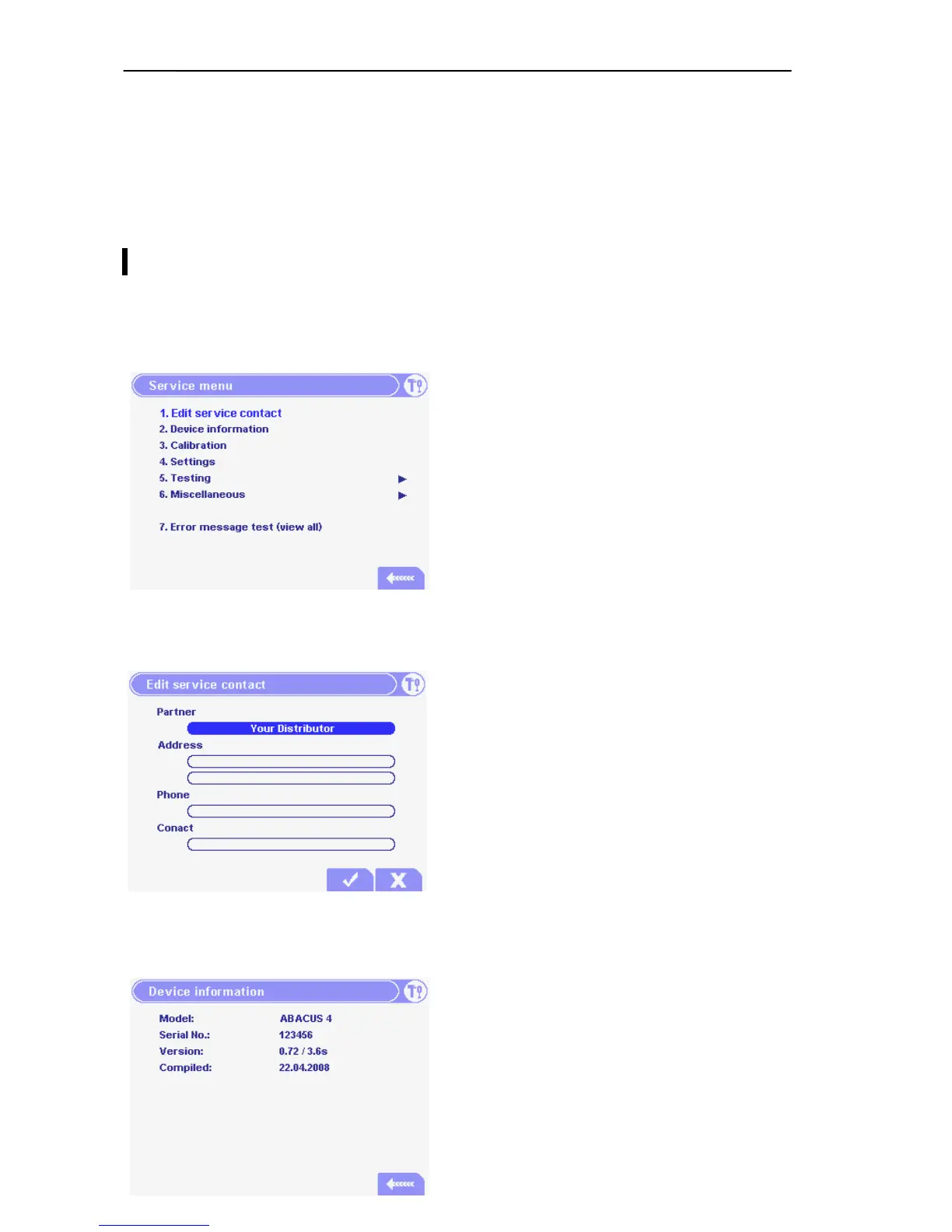 There is a Service menu for servicing and operation checking purposes. The entry point is in the