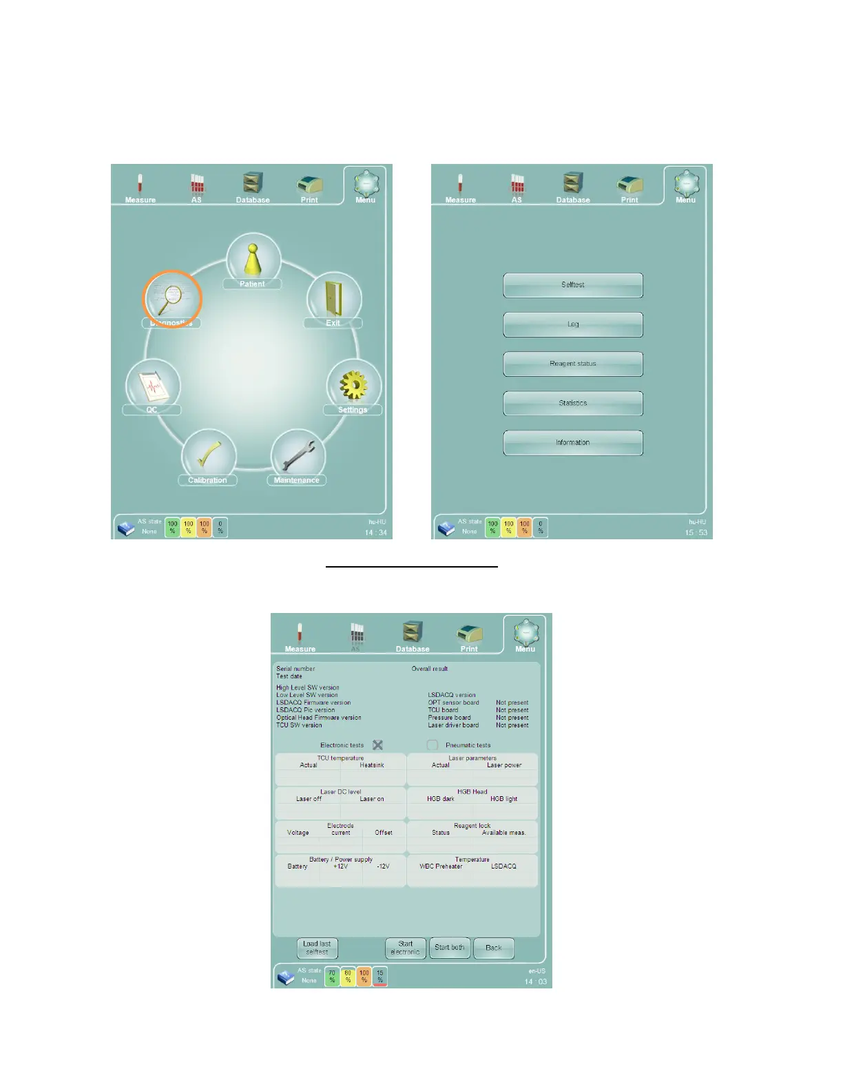The instrument diagnostics section allows the operator to perform diagnostic procedures, check the operational