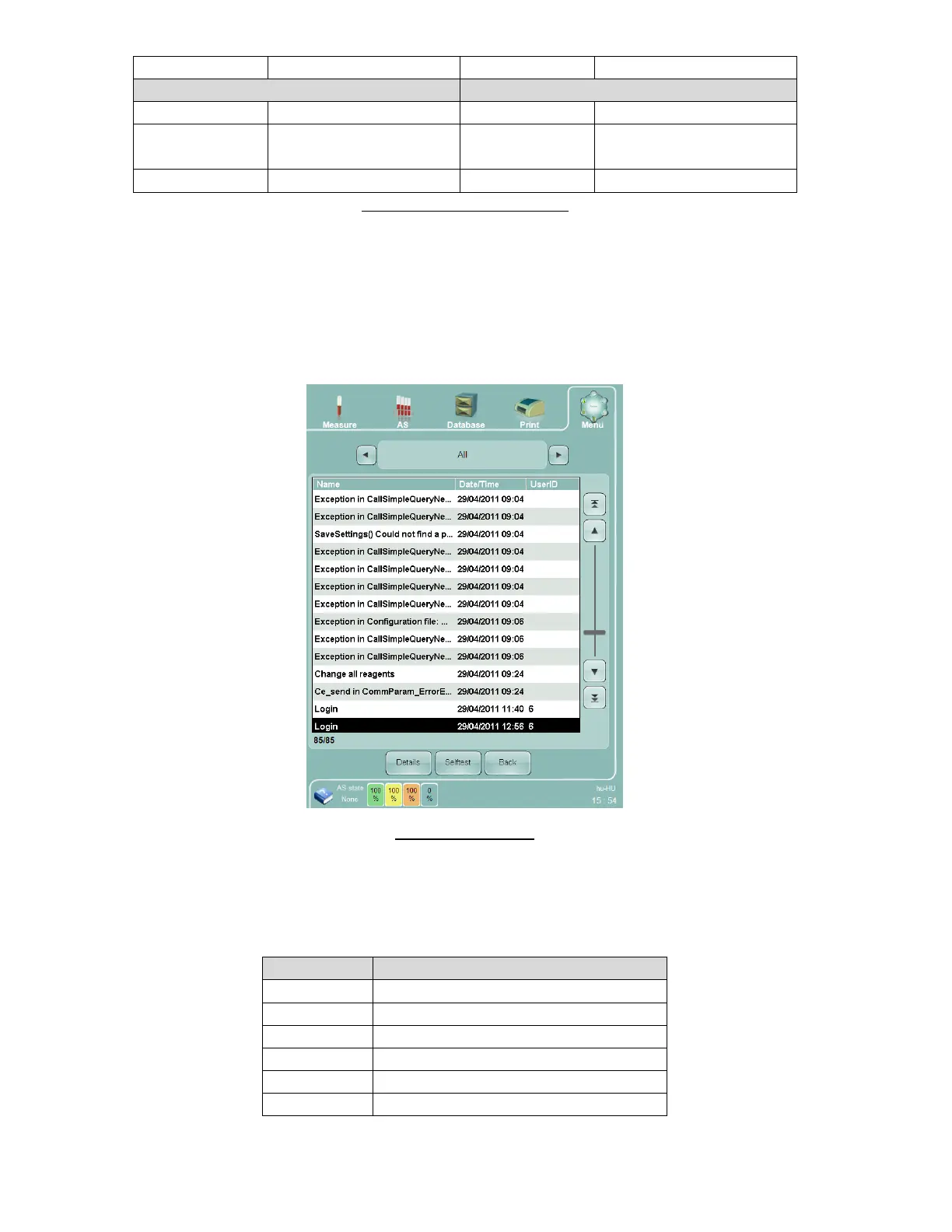 related to operation or measurements. It also lists routine events such as logon. If the multi-user mode is enabled,