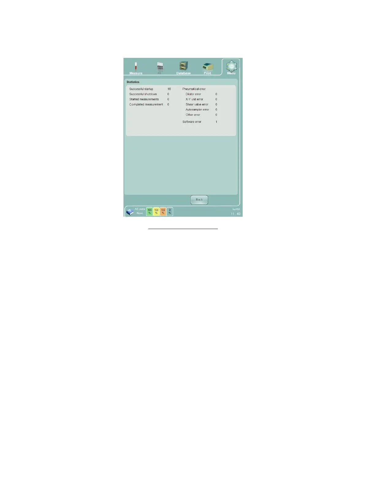This menu item will display cumulative information such as the measurements and number of error events