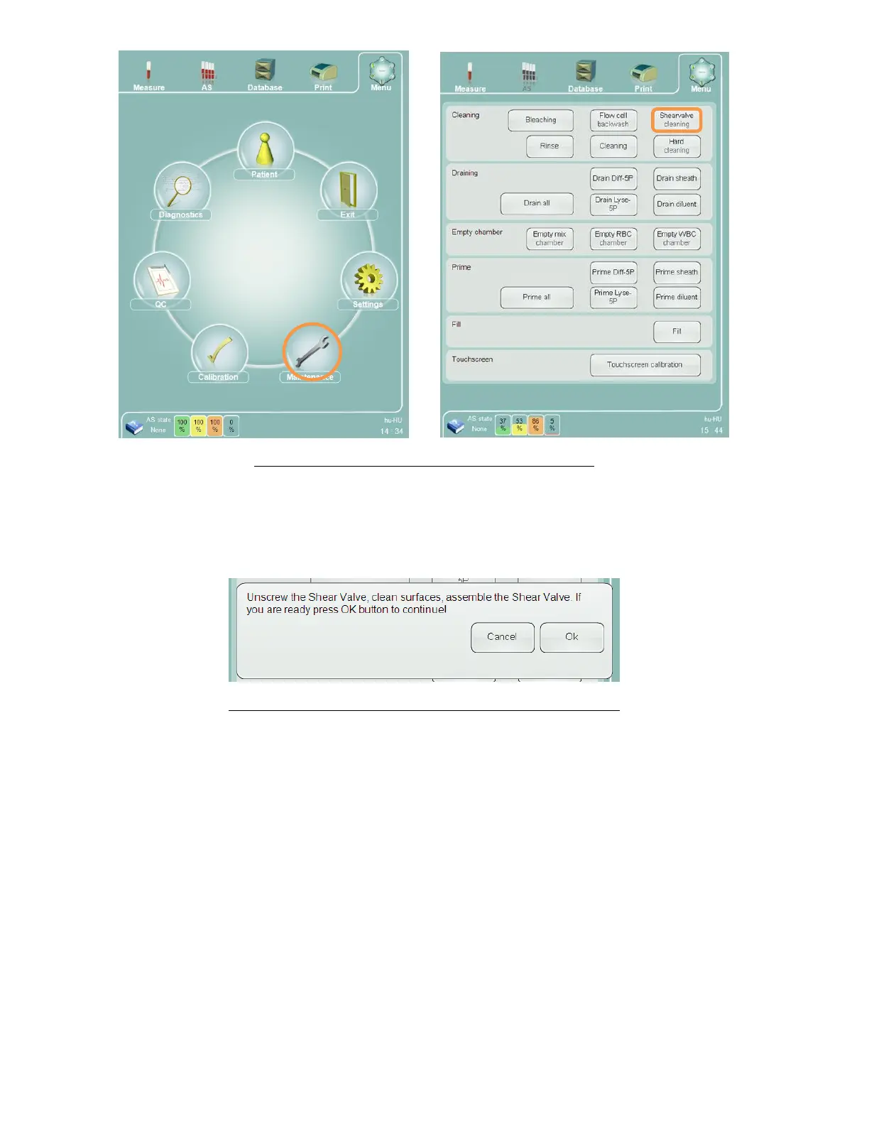 Don’t click or tap the ‘OK’ button until the shear valve has been cleaned and re-assembled! Perform the shear valve