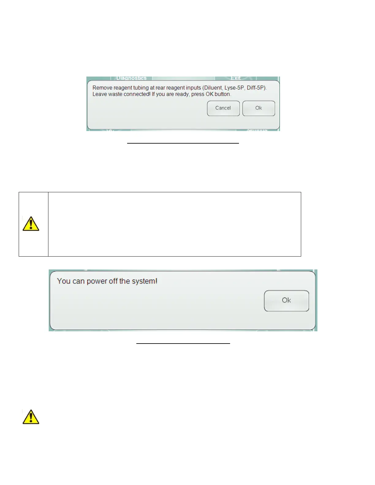 Step 3: The analyzer will ask you to disconnect the ‘Prepare for shipment’ tube set from the reagent connectors on