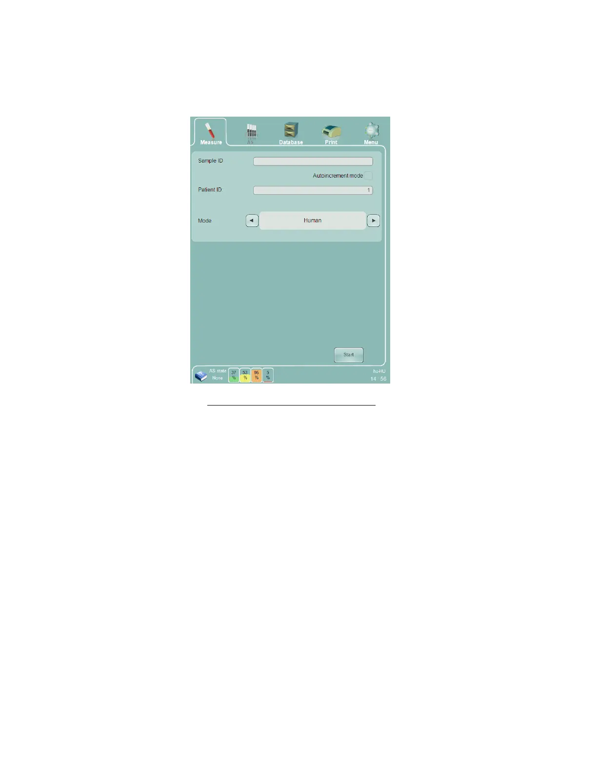 Start the measurement by clicking or tapping the ‘Start’ button on the screen or by pressing the physical