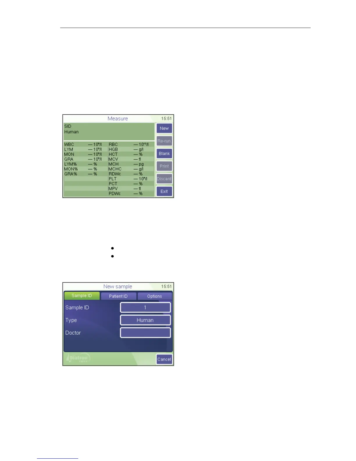 To enter sample information prior to sample analysis, touch sample info field in the