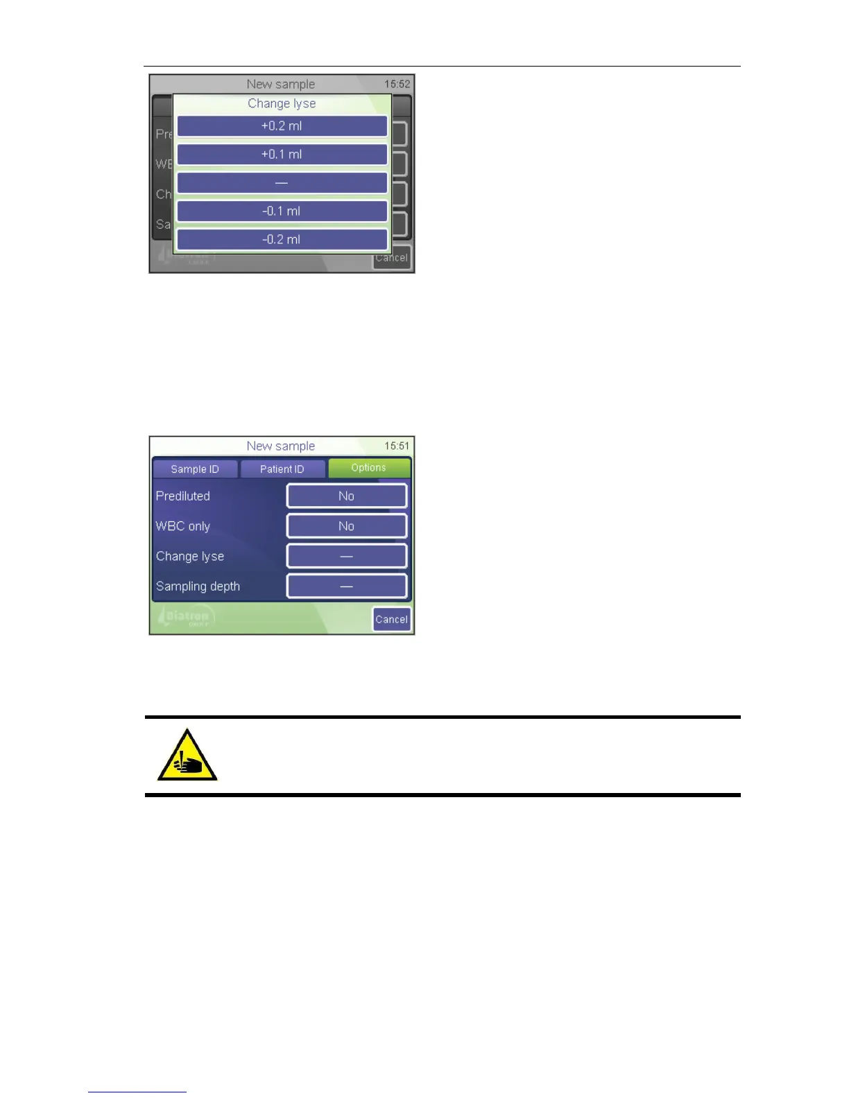 WARNING! Do not reach inside the instrument during operation,