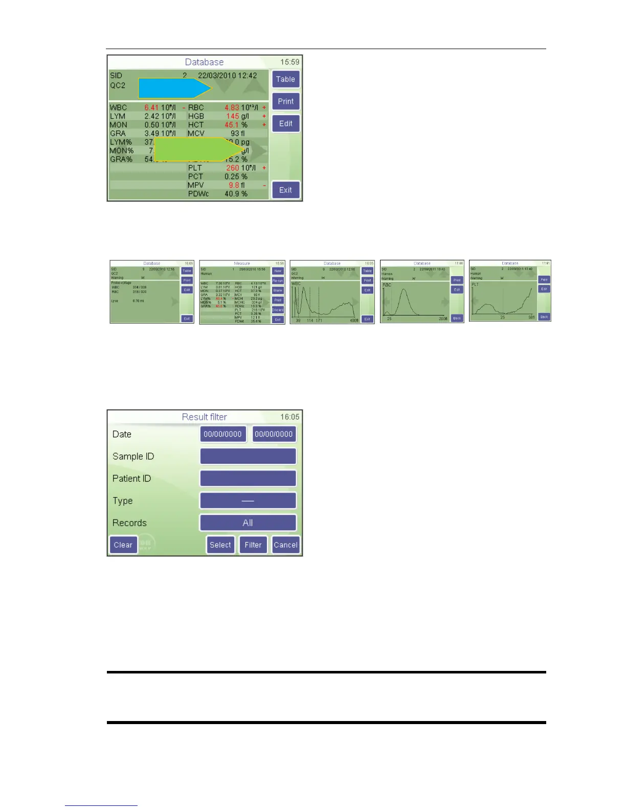 The arrows marked with GREEN color allow looking at various panels of the result.