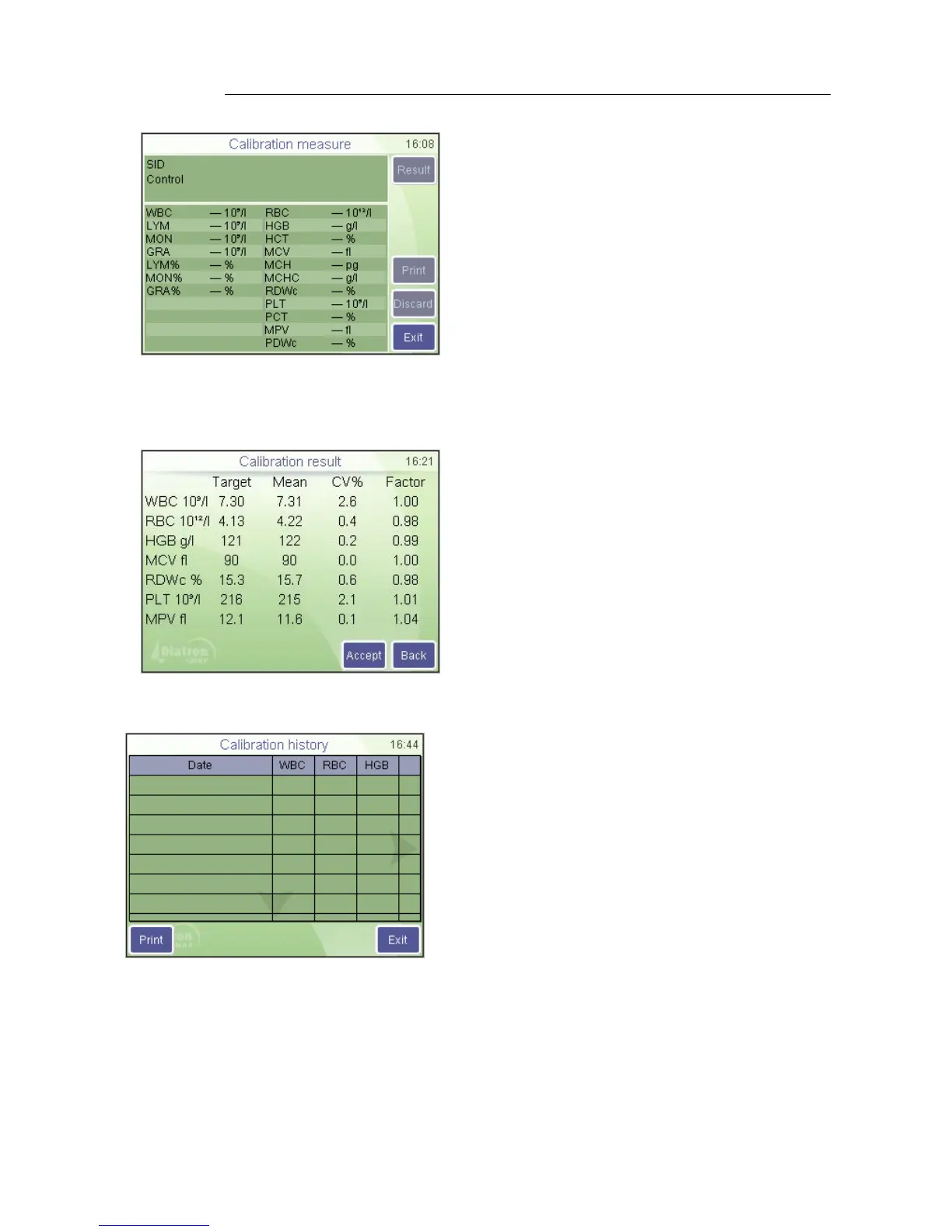 The display shows Calibration measurement at top.