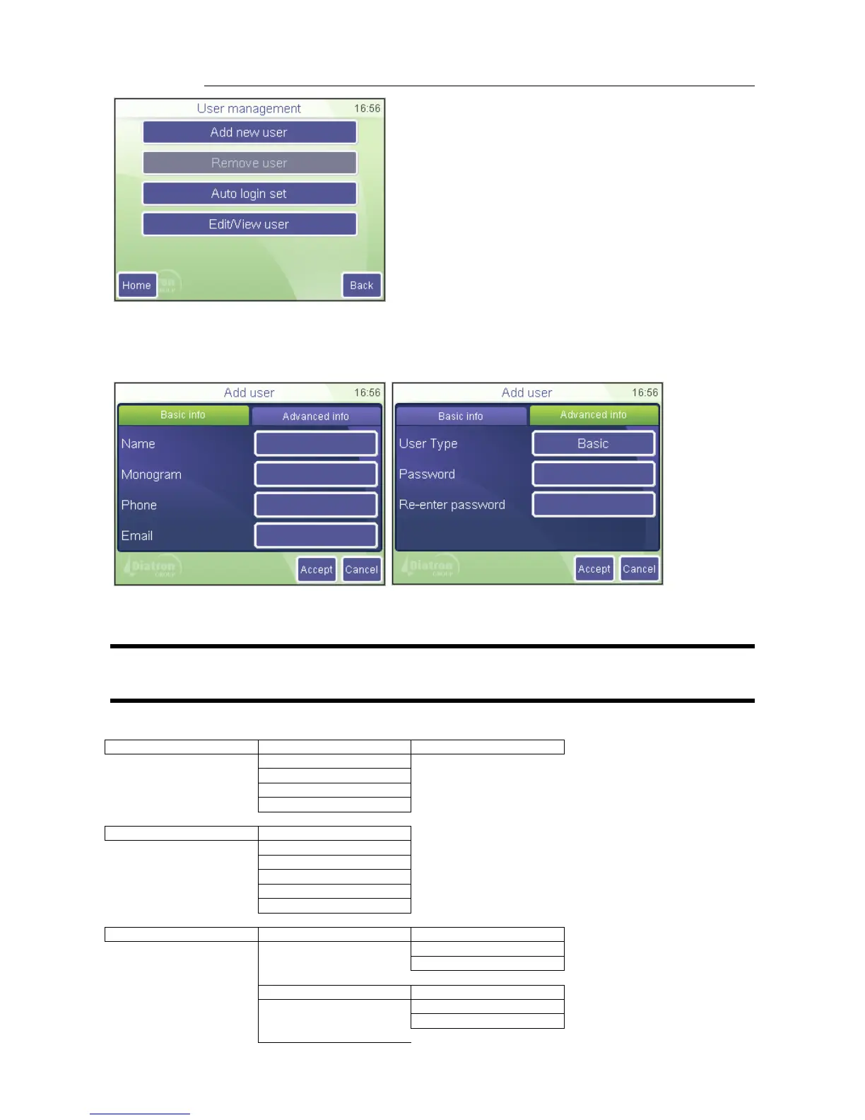 NOTE: User Admin cannot be deleted. Admin password cannot be changed.