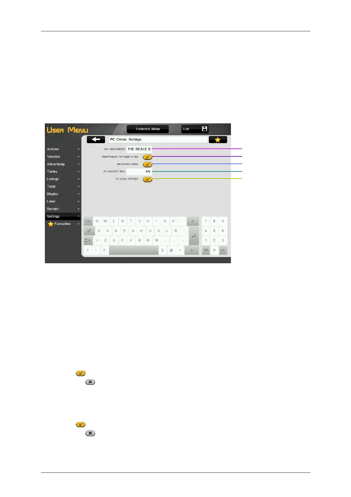 In the menu settings it is possible to configure: the parameters related to PC connection, keyboard