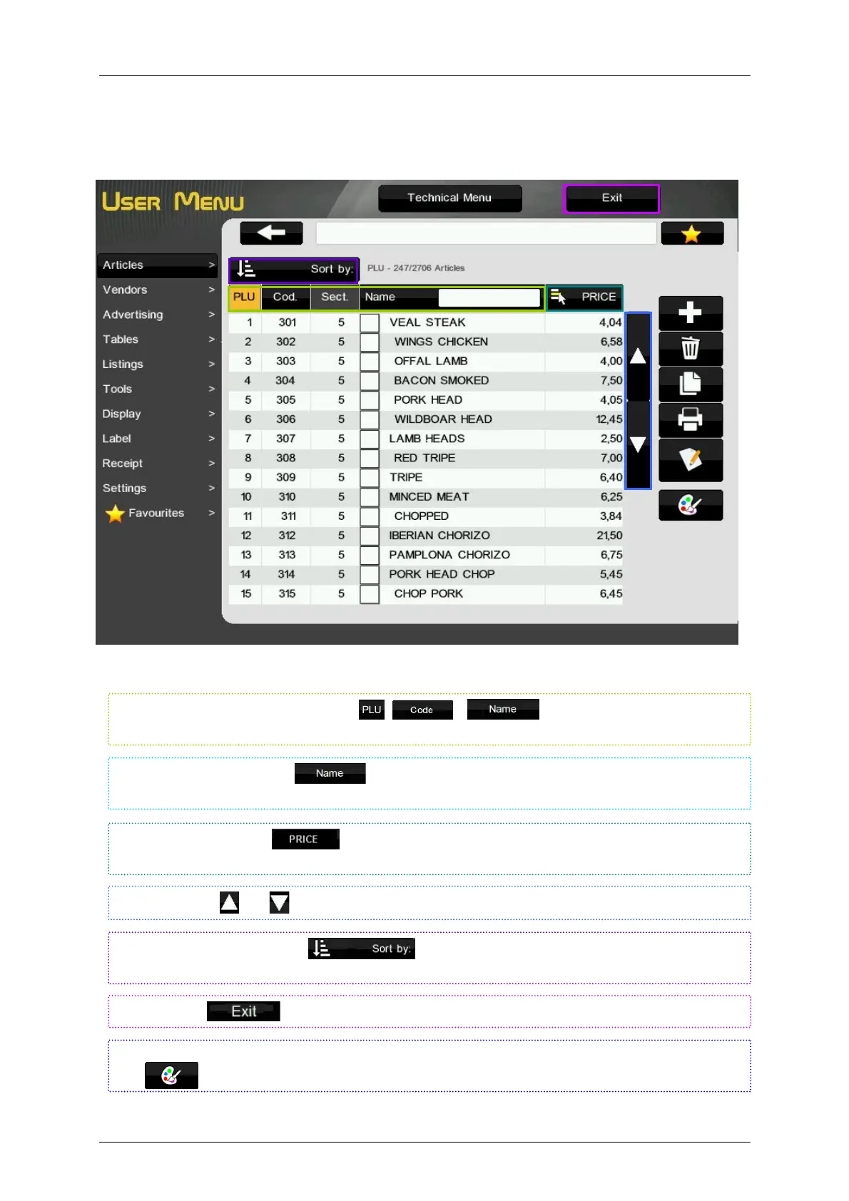 Close to the article name is showed the PLU key colour, if you want change this colour press on the