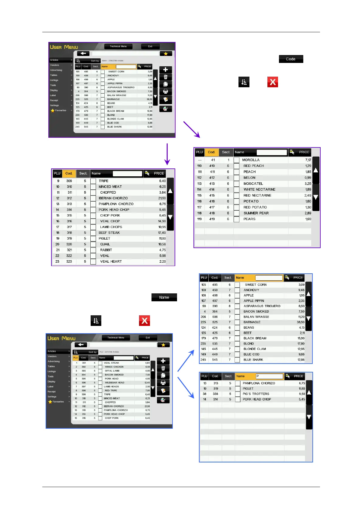 (2). Press the key to sort. Press to cancel.
