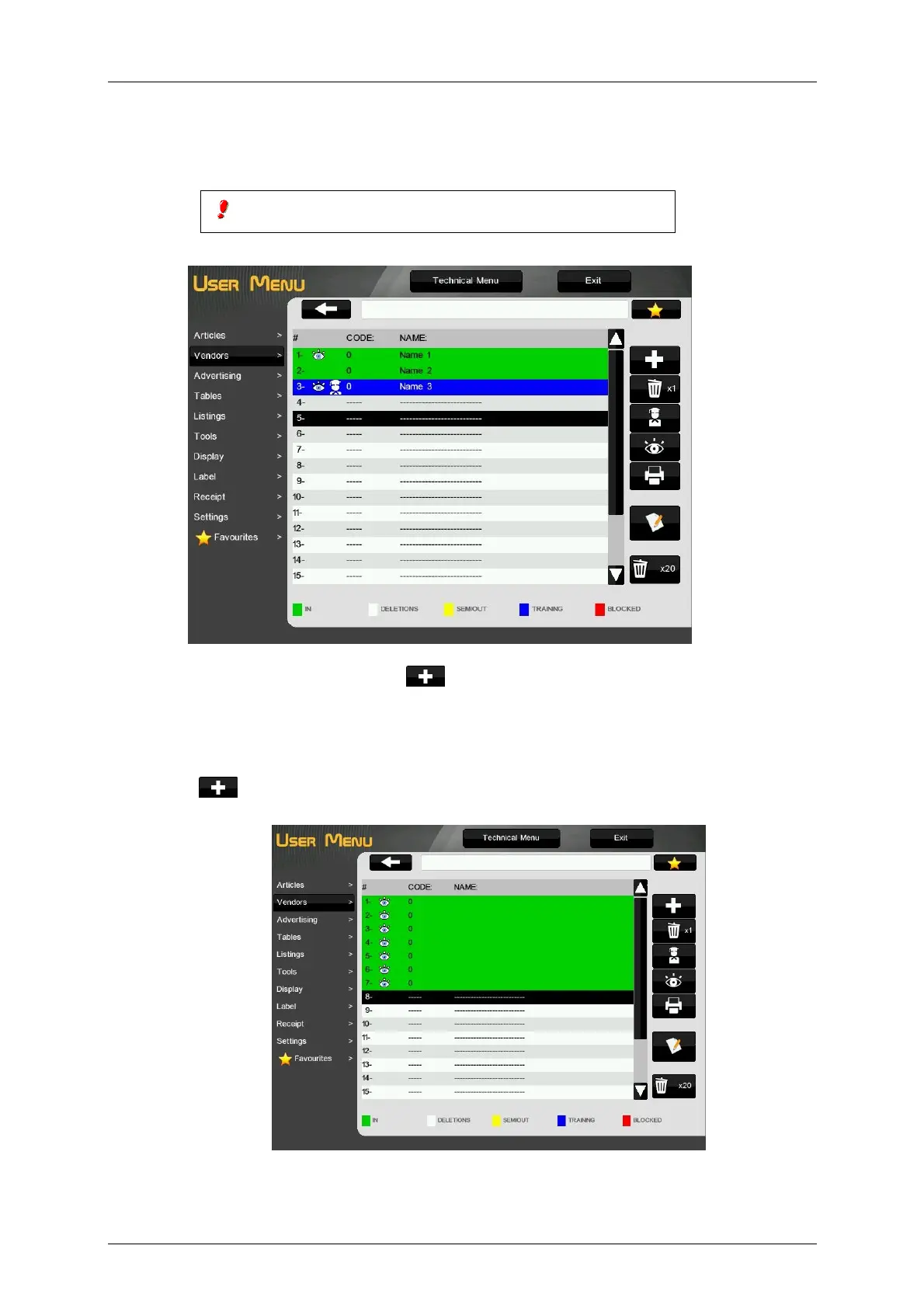 To edit the parameters see paragraph 3.2.2 Vendors edition.