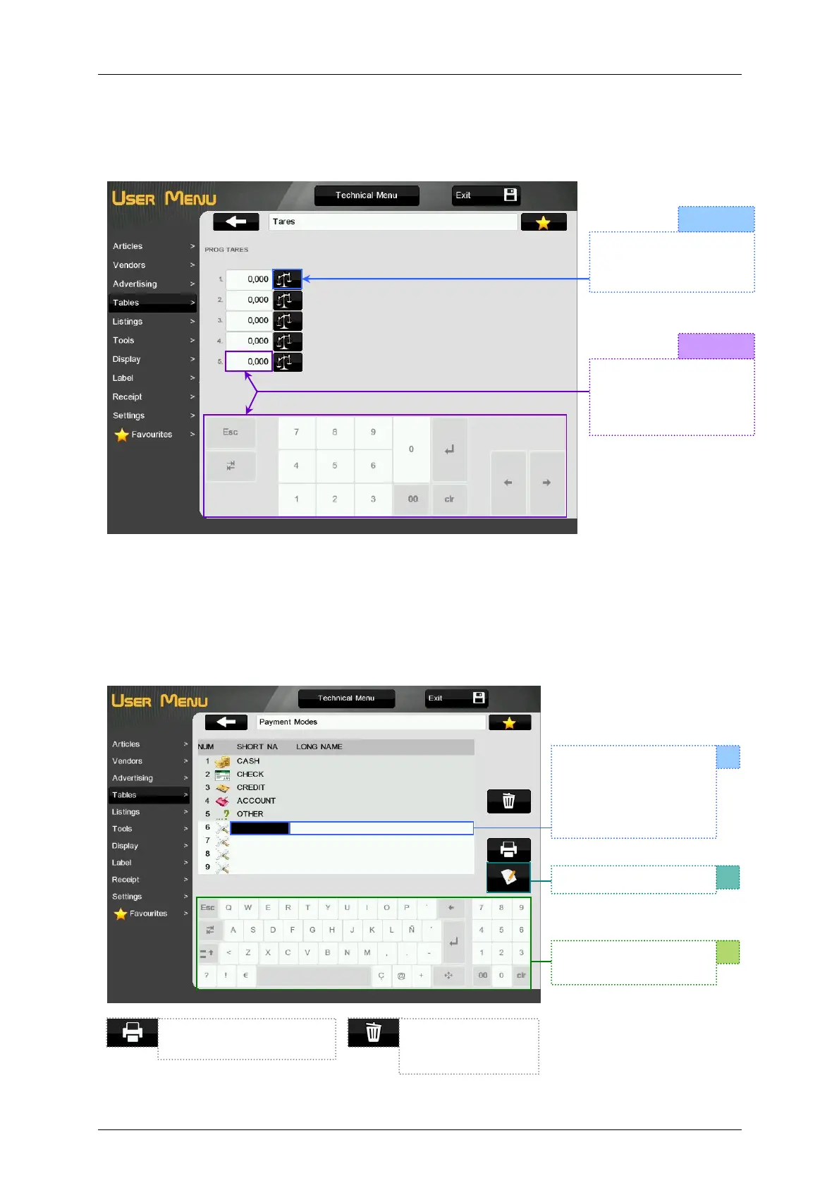 The scale has 9 payment modes, 5 of them are programmed and 4 of them are programmable.