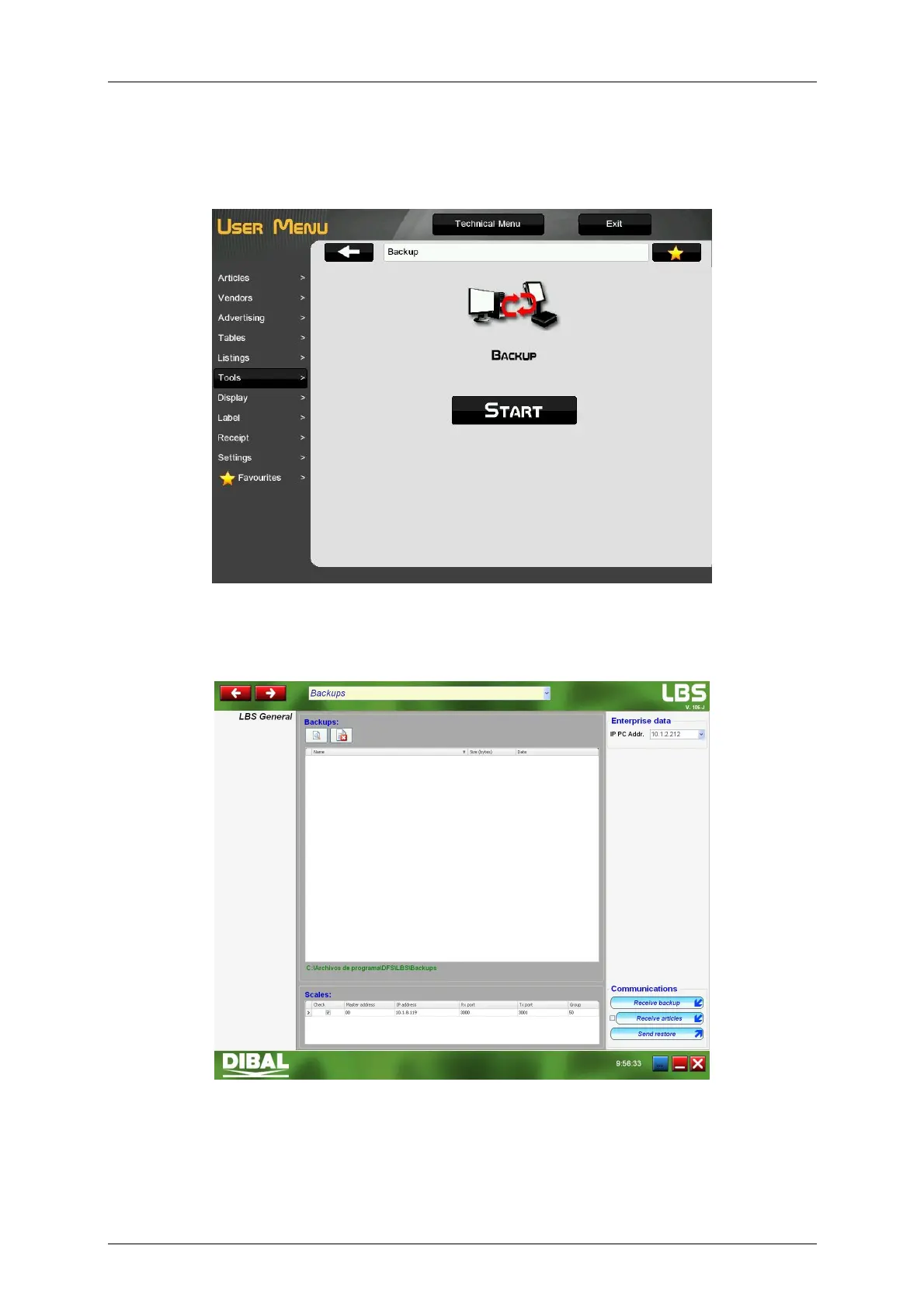 Then you can make back-up copies of the scale (Backup) and restore the scale system using one saved