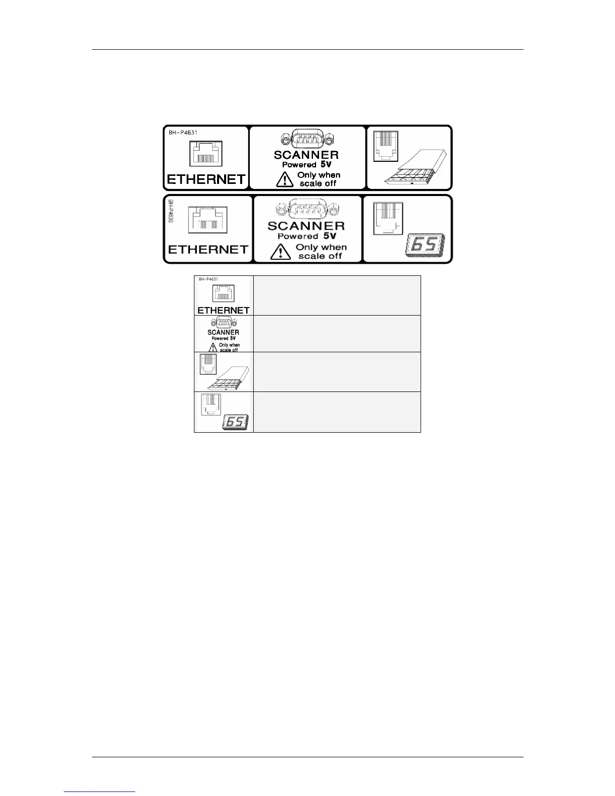 The communication connectors are located on the lower part of the scale. The arrangement and