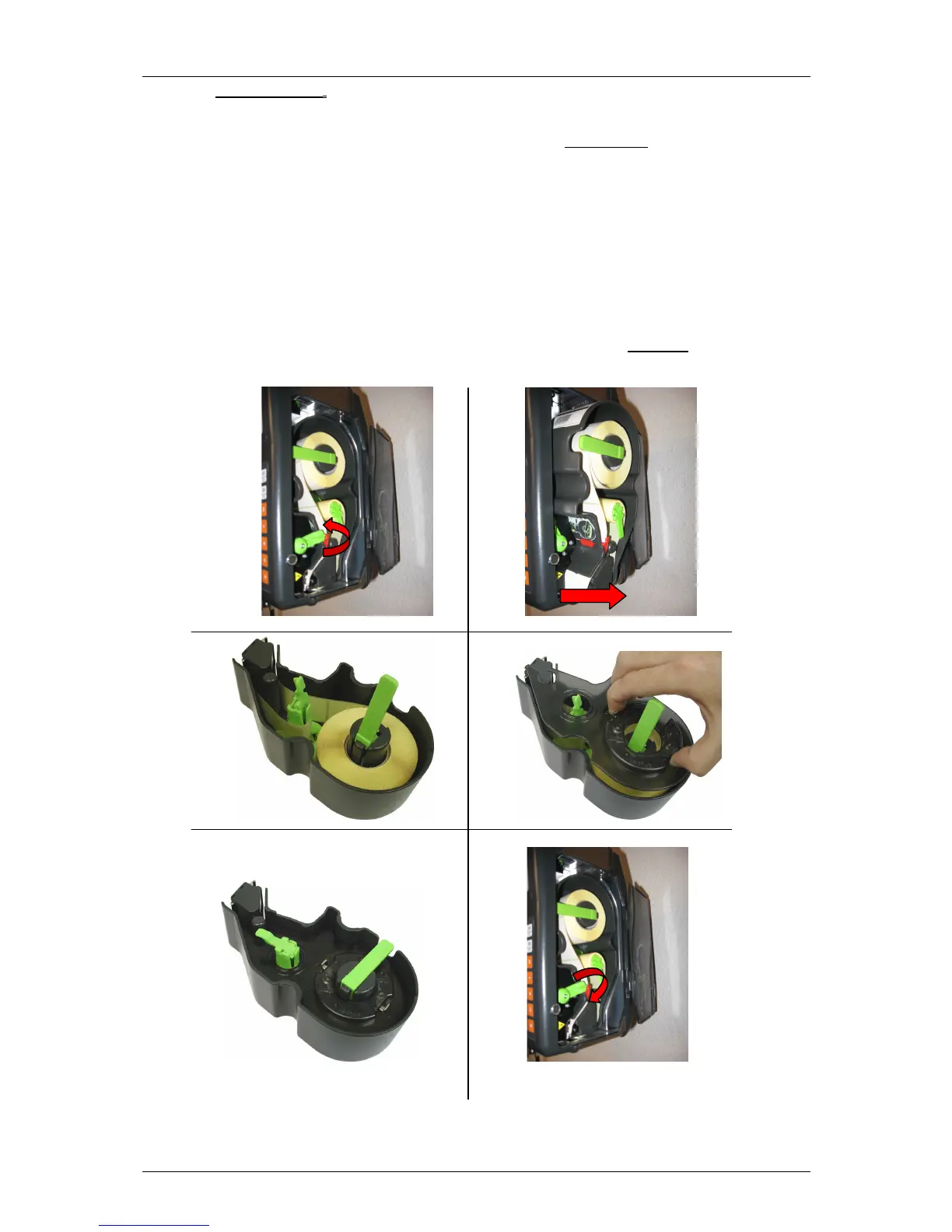 4. Put the new reel of labels in its place within the cartridge and slip the paper through as shown in the
