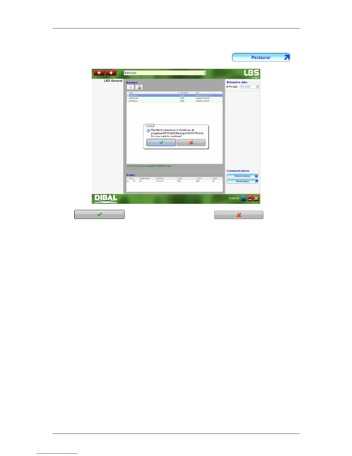 In order to restore a file in the scale, select the file to be restored and click on .