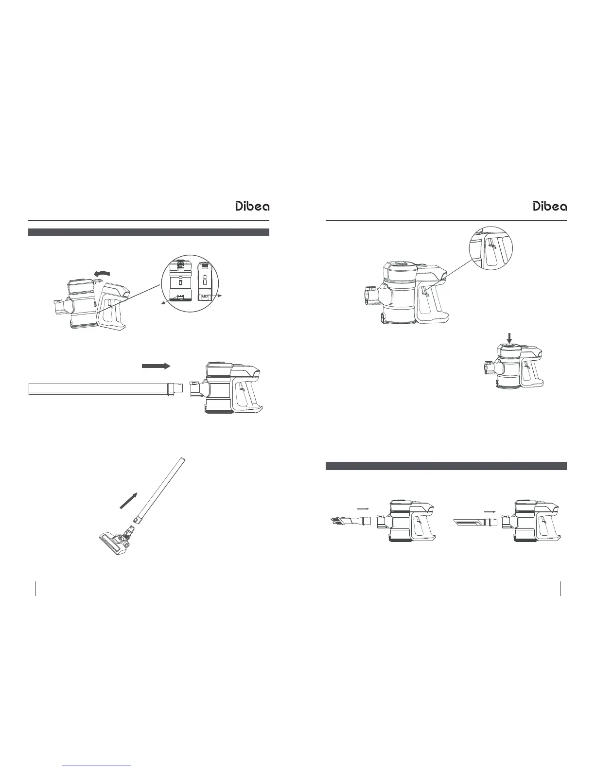 Insert the accessory(bristle brush or long crevice) to the main part as showed below until