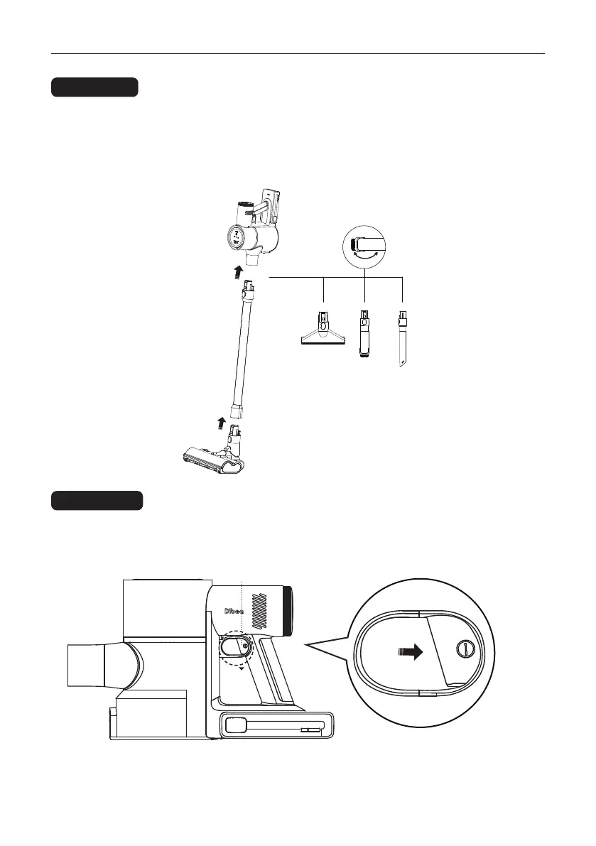 1. Slide wand onto hand vacuum until it clicks.1. Slide wand onto hand vacuum until it clicks.